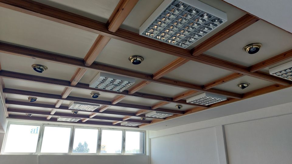 Da das Gebäude ehemals für Tischlerausbildung genutzt wurde, verfügt es über verschieden Holzverkleidungen und Holztüren, so dass es vielseitige optische Eindrücke zulässt.