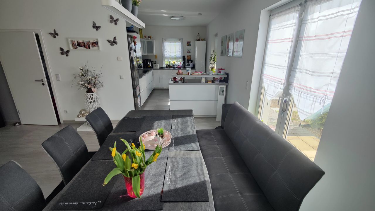 Eine ganz normale Familie von nebenan. Einfach aus der Mittelschicht. Gebaut in einer Neubausiedlung aus 2019 mit einem 1,5 Geschoss Einfamilienhaus.