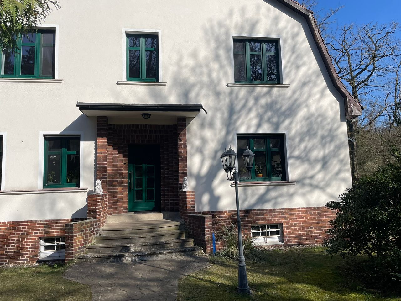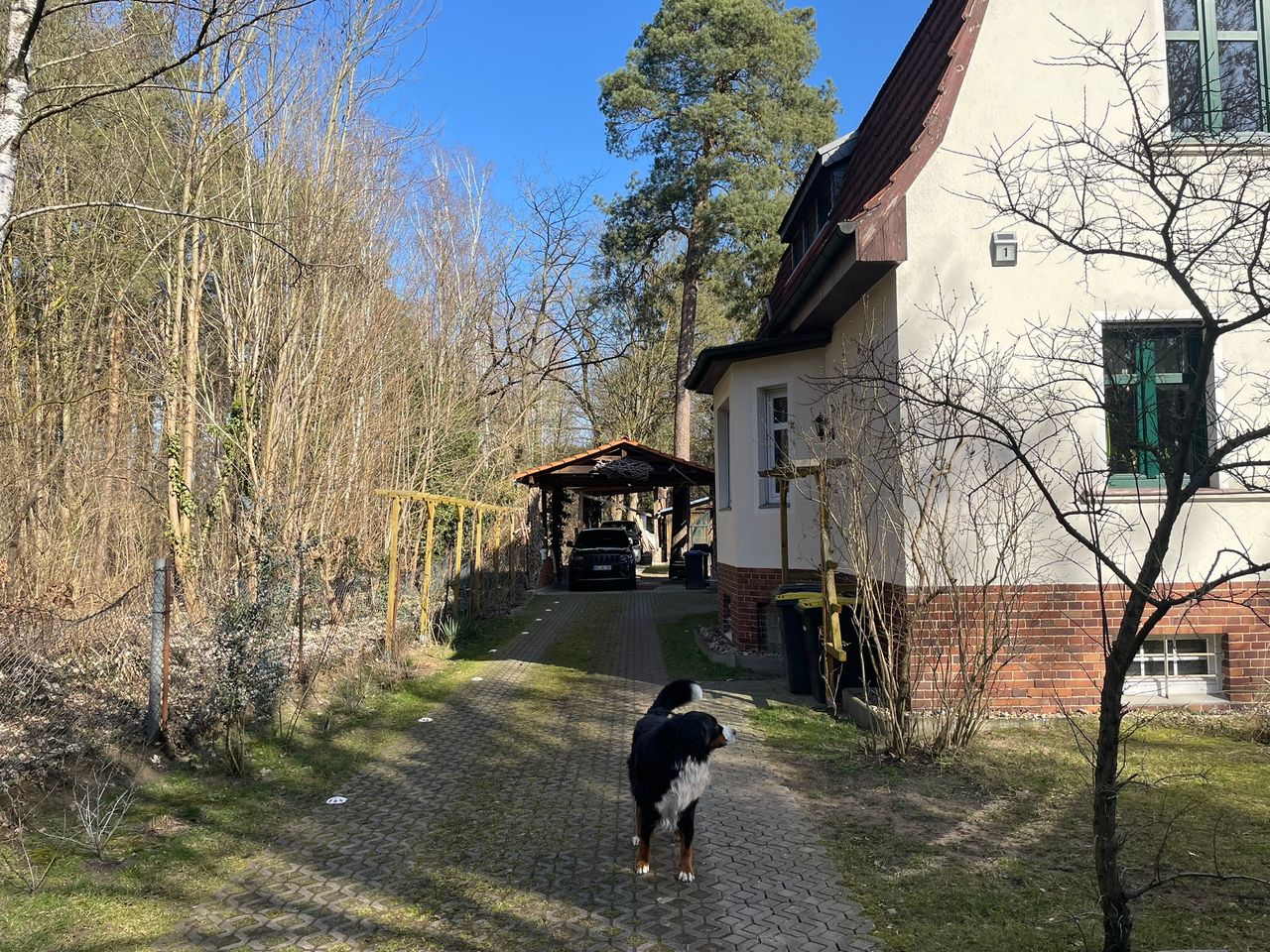 Das Haus liegt am Ortseingang von Grünefeld. Zur rechten Seite gibt es einen Nachbarn, ansonsten Wald.