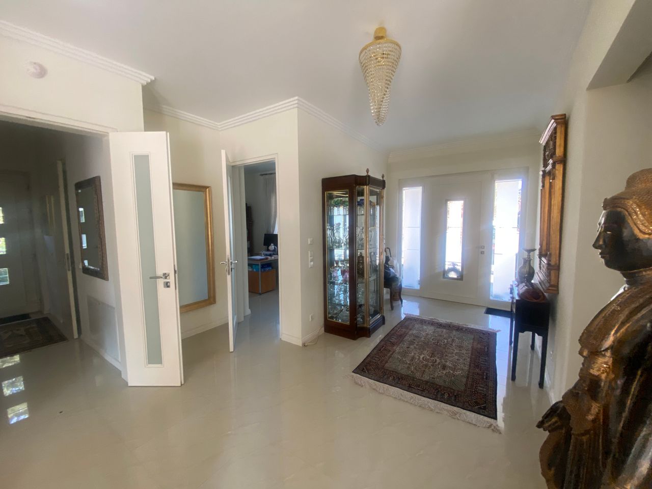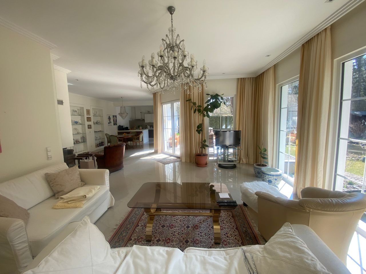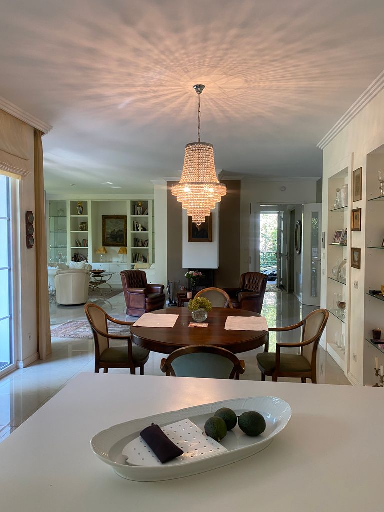 Im Kellerbereich ist ein Kino eingebaut mit originalen Kinositzen. Es verfügt über offene Wohnräume, Essküche mit Blick zum Kamin.