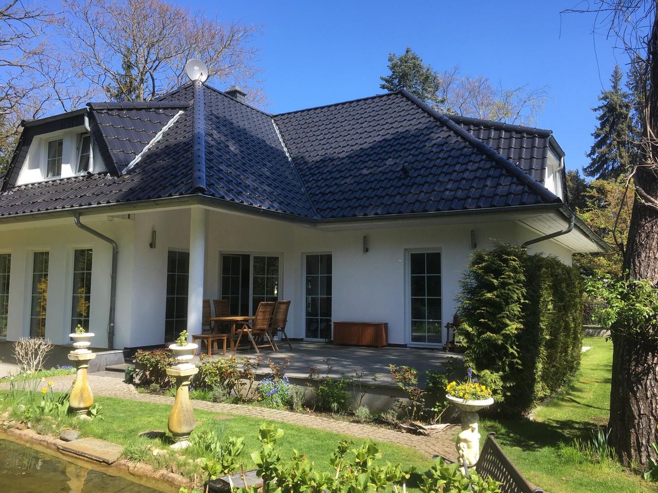 Auf dem Grundstück befindet sich ein großer Fischteich mit Kois, der Garten ist gepflegt mit altem Baumbestand, Garage vorhanden.