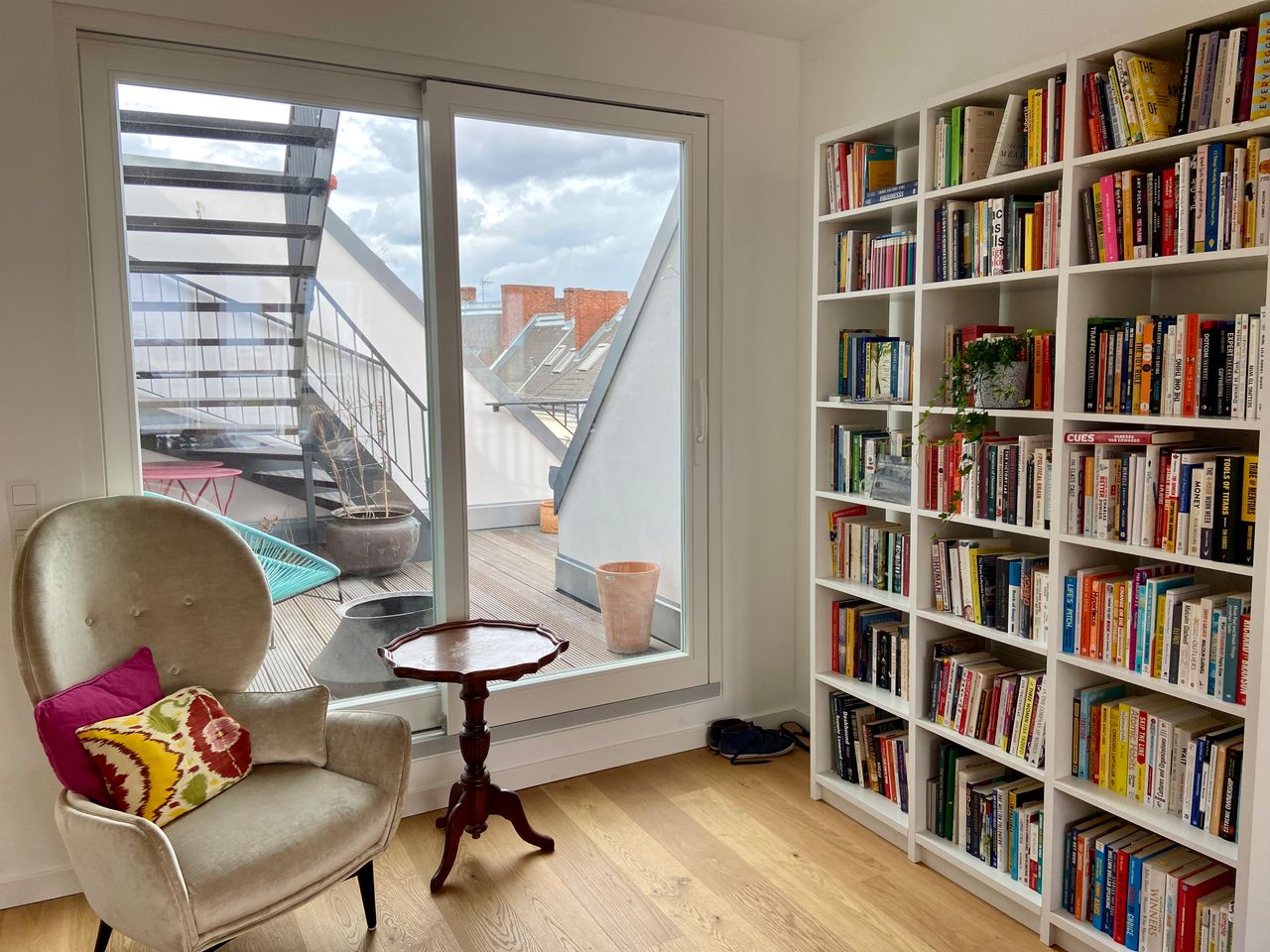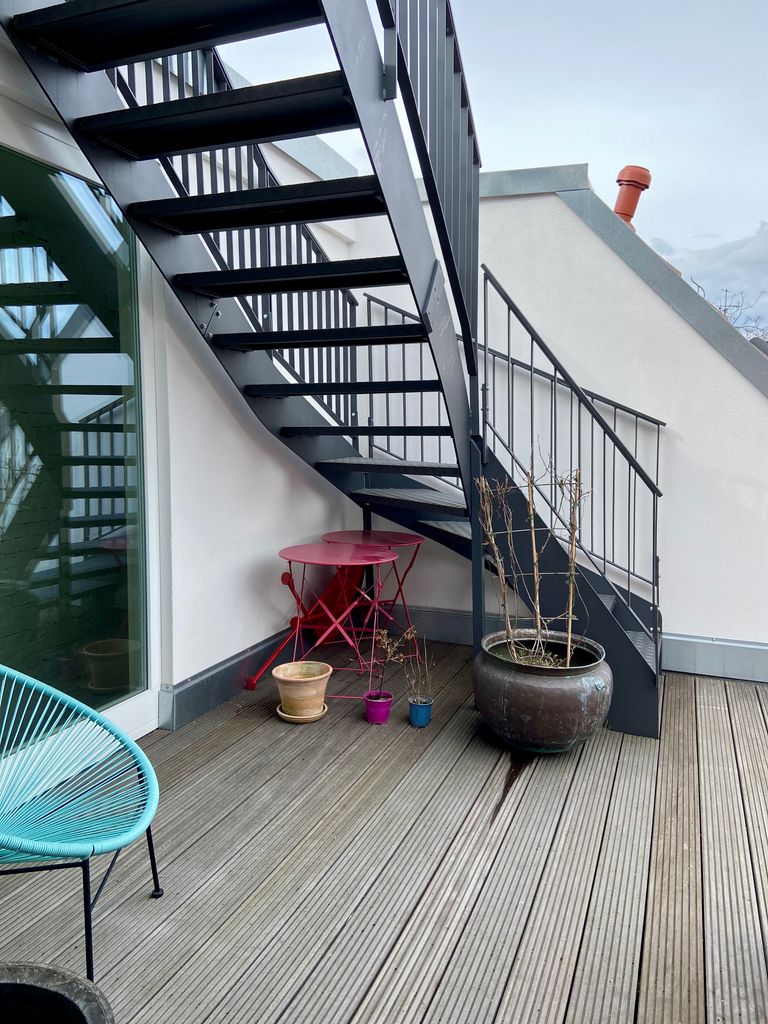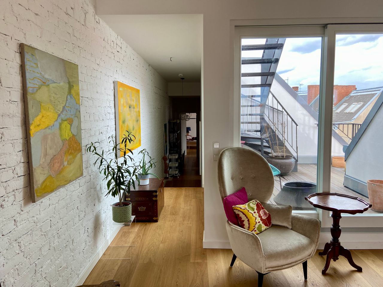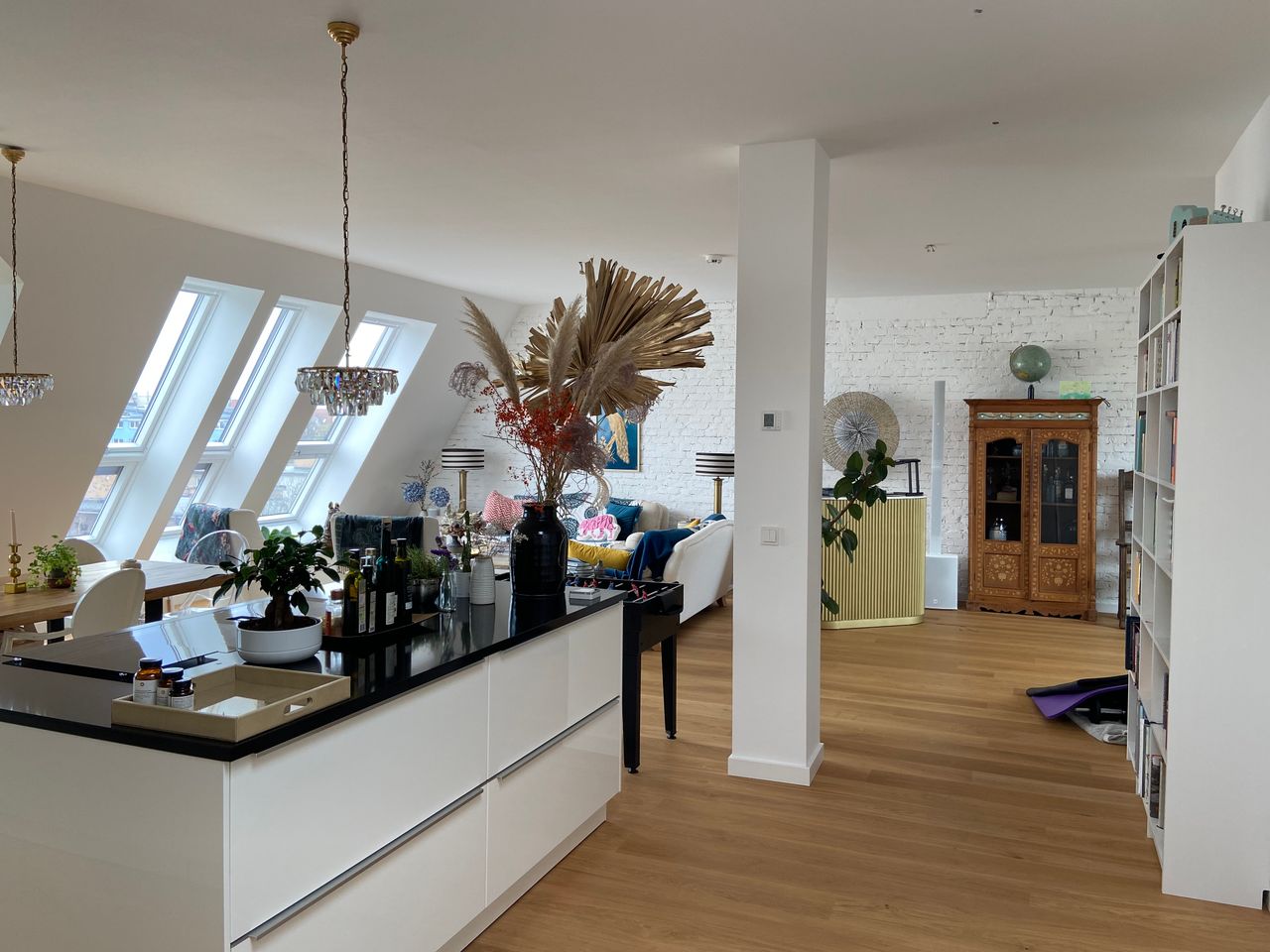 Dieses großzügige, 180 m2 große Dachgeschoss verfügt über einen 80m2 großen, lichtdurchfluteten Wohnbereich mit hochwertiger Küche und Kochinsel sowie 25m freigelegtes Mauerwerk. Vom Balkon geht es auf die große Dachterrasse, die einen unverbauten Blick über die Stadt bietet, wie es ihn nur selten gibt in der Hautstadt: vom Rathaus Schöneberg zum Alex, von Potsdamer Platz und Reichstag zur Gedächtniskirche.