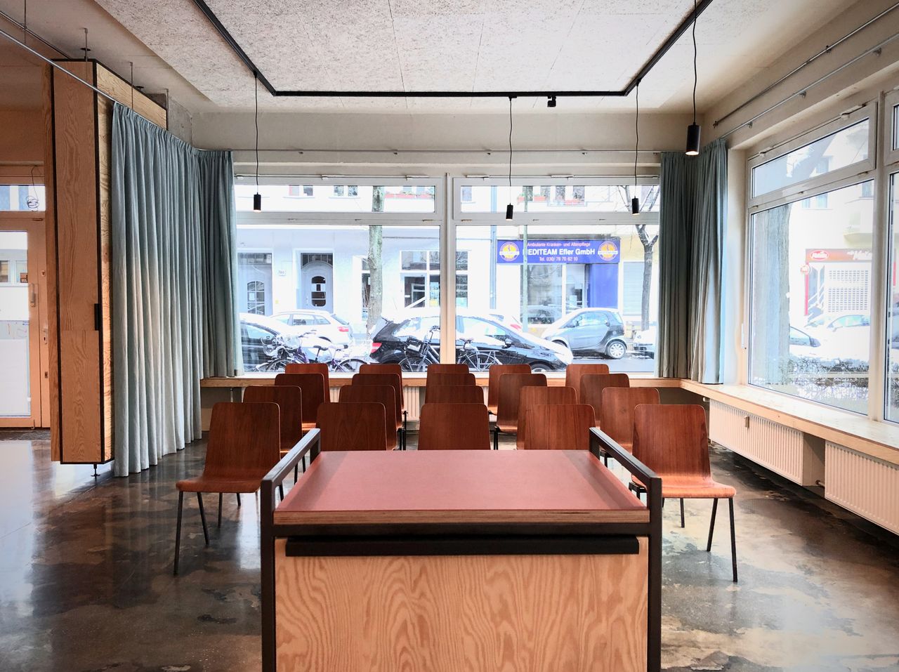 Der Pavillion wird in der Regel vermietet als Meeting-, Schulungs- & Event-Raum oder Pop-Up Store. Die Möbel sind modular und können nach Belieben aufgebaut werden. Es steht außerdem ein 75" Monitor zur Verfügung sowie einige Whiteboards.