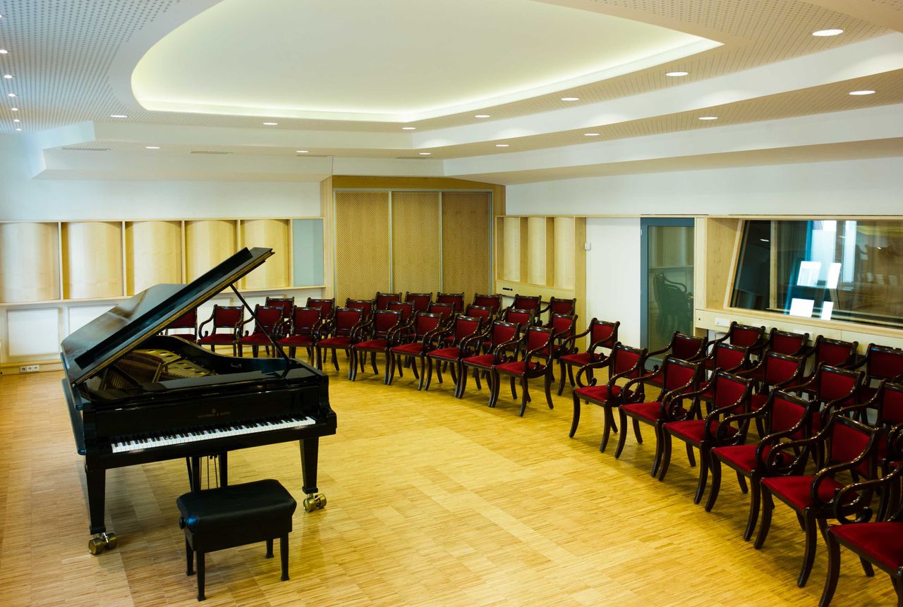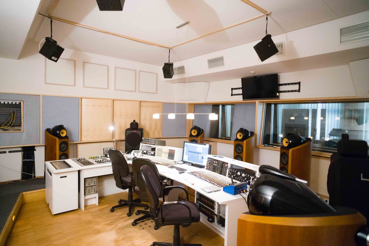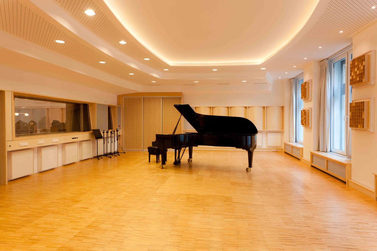 Tonstudio mit Steinway-D Flügel, 1 Aufnahmeraum, 3 Regieräume, Küche.