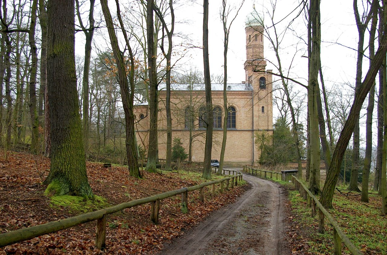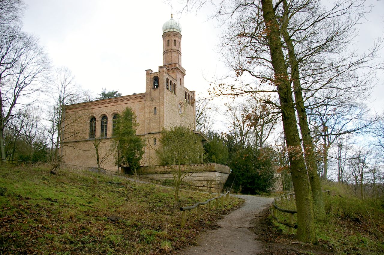 Im Jahre 1832 gab Friedrich Wilhelm III. den Auftrag zum Bau einer Kirche in russischem Stil. Nach Plänen von August Stüler wurde das Gebäude mit stark italienischen Anklängen 1834-37 auf einem Hügel in der Nähe des Blockhauses mit Blick über die Havel errichtet.