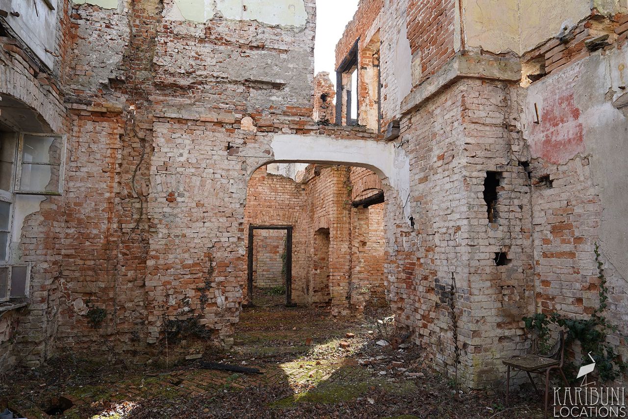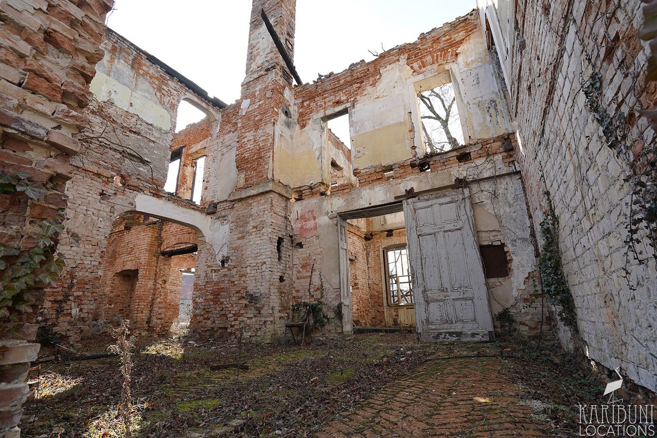 In direkter Umgebung liegen die verfallenen Gebäude eines historischen Landguts aus dem 19. Jahrhundert, darunter eine alte Schmiede, mehrere ruinöse Wohnhäuser und eine Kapelle. Das gesamte Areal wirkt roh, morbide und aus der Zeit gefallen – eine ideale Kulisse für raue oder verstörende Szenarien.
