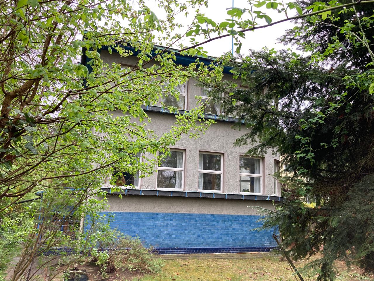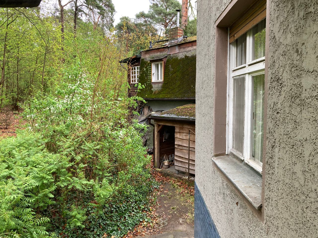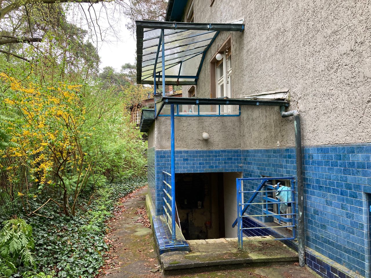 Markante Fabrikantenvilla aus den 1930-er-Jahren mit Freitreppe und schönen Glasdächern. Runder Vorbau und zwei Balkone (EG zum Wald und OG zur Straße). Flur im maritimen Stil, Keller mit viel Werkzeug und Drehbank. Freistehendes Garagenhaus auf dem Grundstück. Auf der Rückseite des Hauses Wald, nach vorne heraus und über die Straße die Havel. Parkett- und Dielenboden.