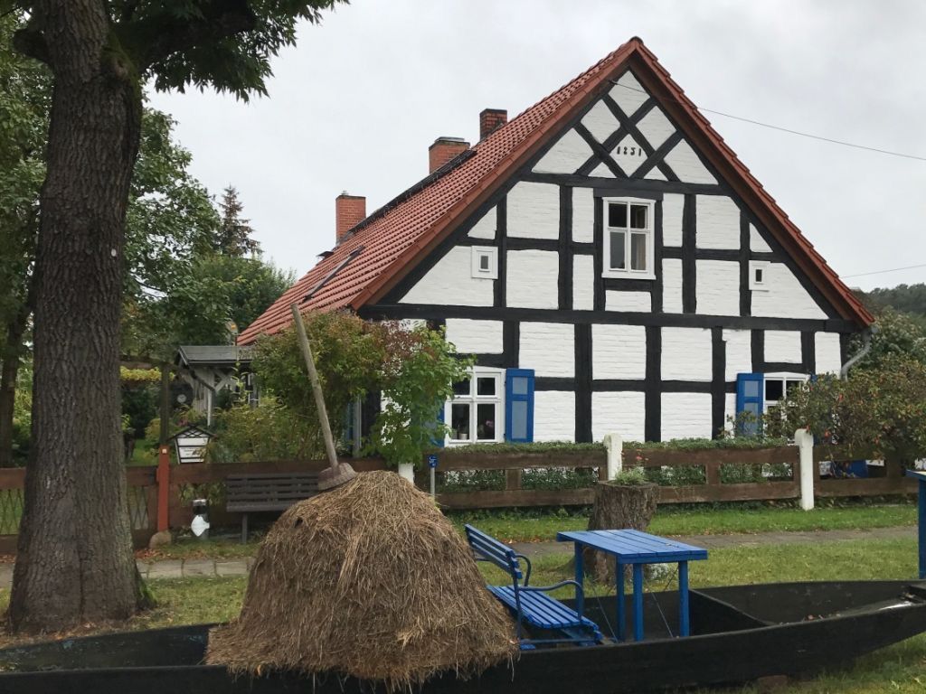 Das alte Fachwerkhaus steht im Zentrum des Ortes Pretschen direkt neben der alten Kirche. Im Haus selbst sind zwei Wohnräume sowie 2 Bäder mit Lehmputz nach historischem Vorbild gestaltet.