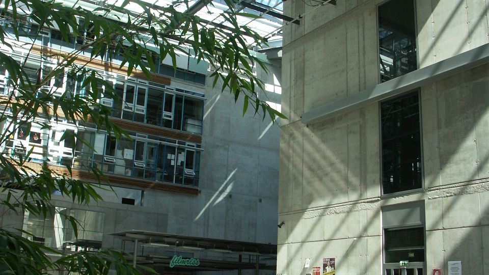 Einen wunderschönen Aussichtspunkt findet man über den Dächern der Hochschule im 5.OG. Dort oben befindet sich ebenfalls ein Sitzungsraum für wichtige Besprechungen. Man kann von dort aus den Fernsehturm am Alexanderplatz sehen, den Funkturm und die Nikolaikirche in Potsdam.
