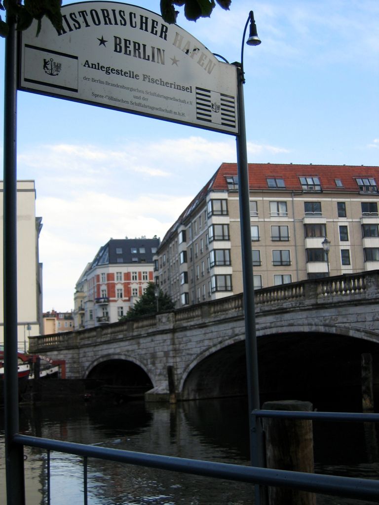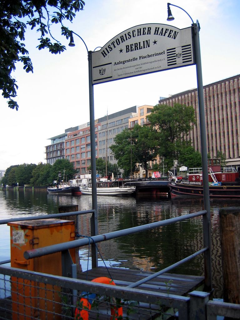Die acht Hektar große Insel gehörte zum ältesten Teil der mittelalterlichen Stadt Cölln. Bis ins 15. Jahrhundert wohnten dort wohlhabende Fischer und Schiffer. Im 17. Jahrhundert entwickelte sich die Gegend zum Quartier der armen Leute, dem sogenannten Fischerkiez. Bis zum Zweiten Weltkrieg bewahrte die Altstadt ihr mittelalterlich-malerisches Flair. Im Zweiten Weltkrieg wurde die Fischerinsel weitgehend zerstört, die verbliebene Altbausubstanz wurde von 1967 bis 1971 abgerissen. Nur ein Gebäude blieb erhalten: das Haus Friedrichsgracht 15 von 1740, das jetzt gegenüber am Märkischen Ufer 12 seinen Platz gefunden hat. Bis 1972 entstanden auf der Fischerinsel fünf Hochhäuser und zwei Doppelhochhäuser. Von der Fischerinsel hat man Blichk auf den Historischen Hafen Berlin. Dort ist ein für die Bundesrepublik Deutschland einzigartiges Ensemble von historischen Binnenschiffen verschiedenster Bauart und Herkunft zusammengeführt worden. Insgesamt über zwanzig historische Schiffe, darunter fahrtüchtige Dampfschlepper, typische Berliner Fahrgastschiffe der Jahrhundertwende und historische Maßkähne - zum Teil mit originalen Segeleinrichtungen - können im Zentrum der Stadt in unmittelbarer Nähe zum Nikolaiviertel und Märkischem Museum entdeckt werden. (www.historischer-hafen-berlin.de)