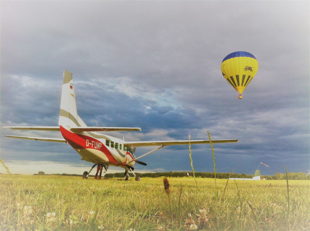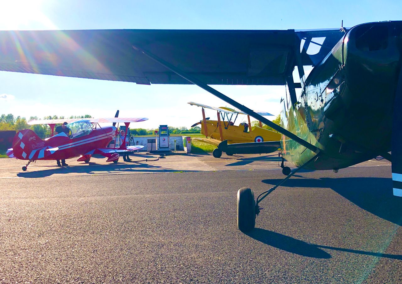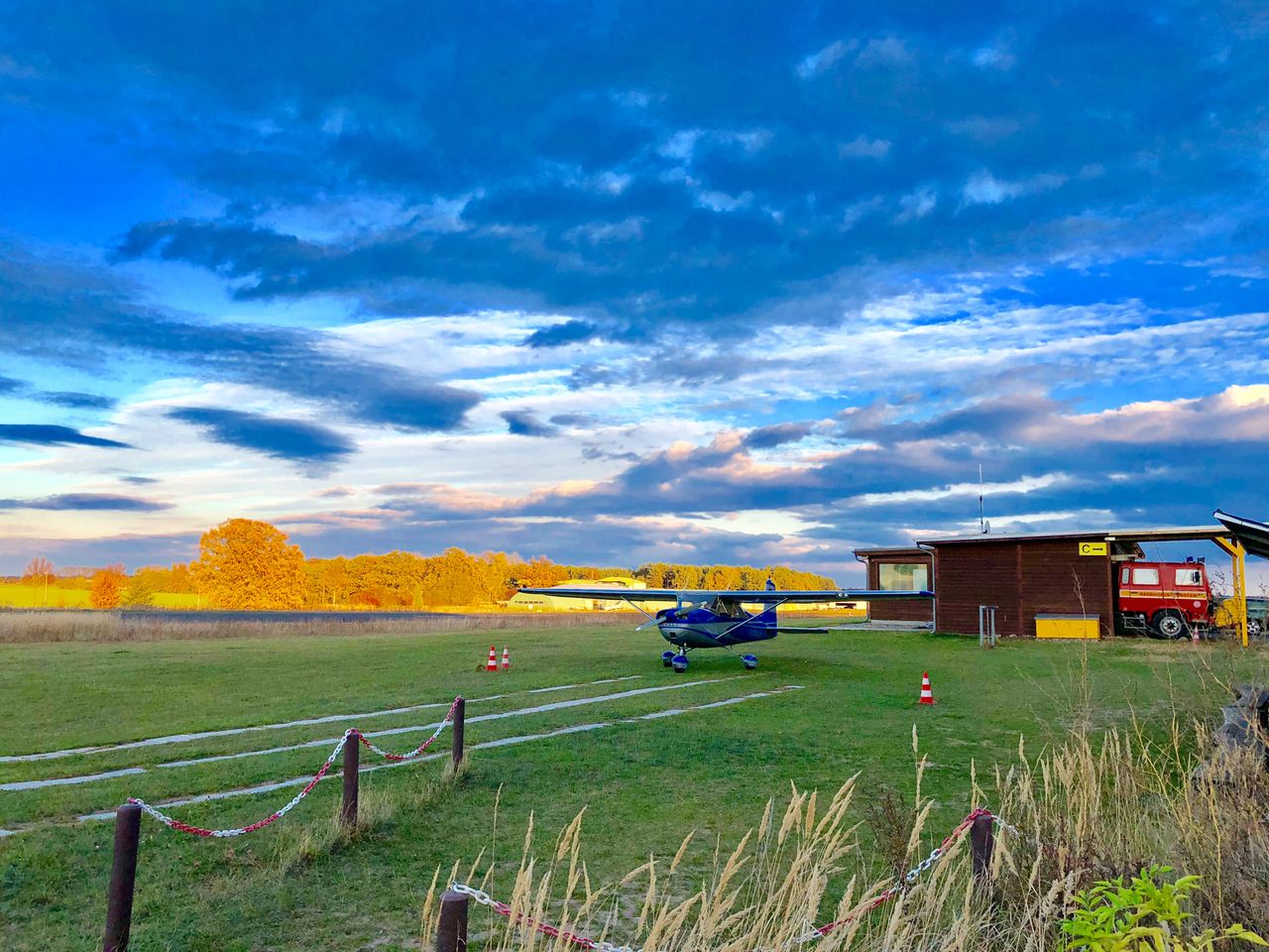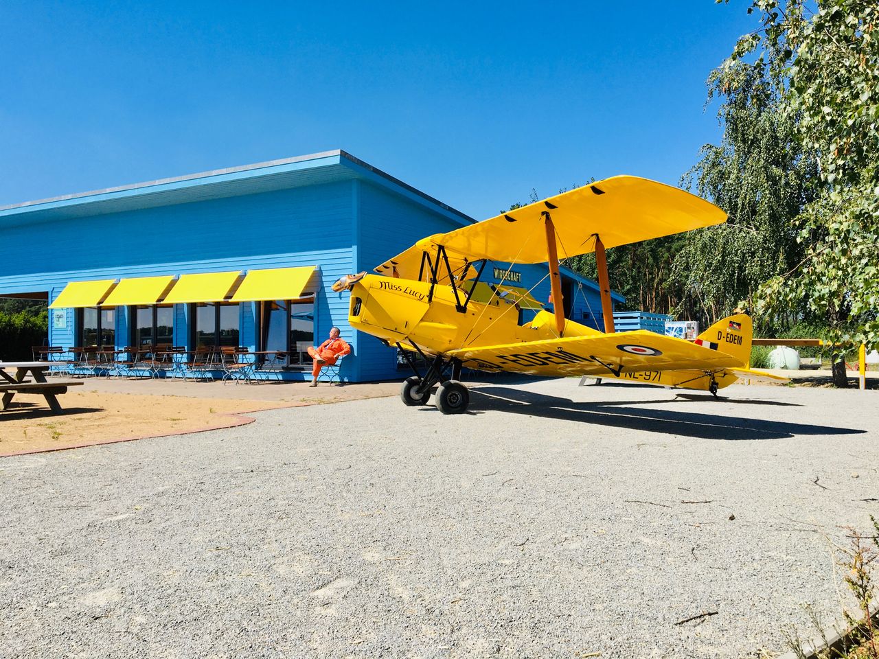 Cooler Flugplatz für kleinere Flugzeuge, Landebahn, Hangars, kultige Gebäude, Oldtimerflugzeuge, Moderne Flugzeuge, Feuerwehr
