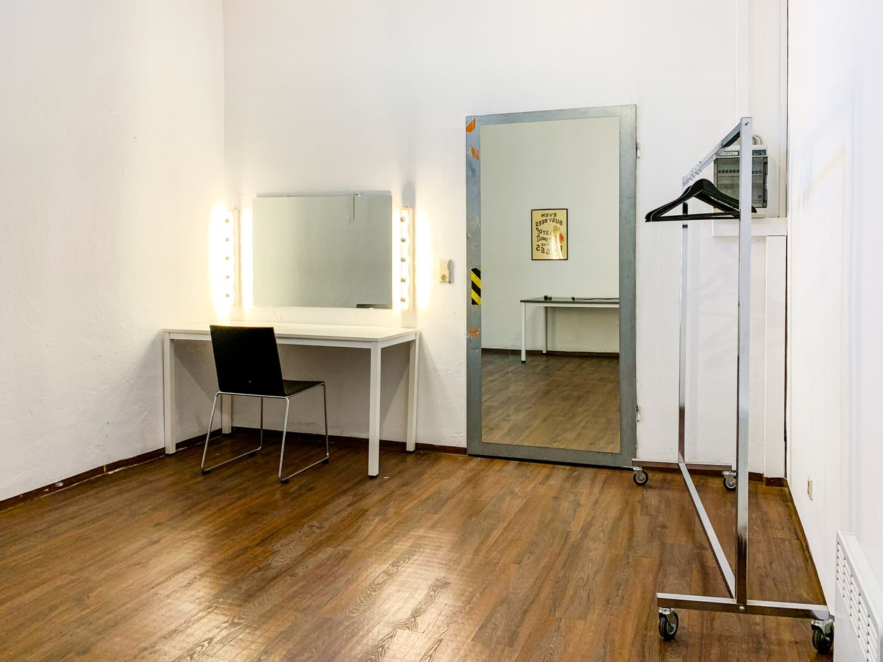 Bereiche für Garderobe und Make-up können im Souterrain des Studios 411 benutzt werden, wo sich auch die Teeküche befindet.