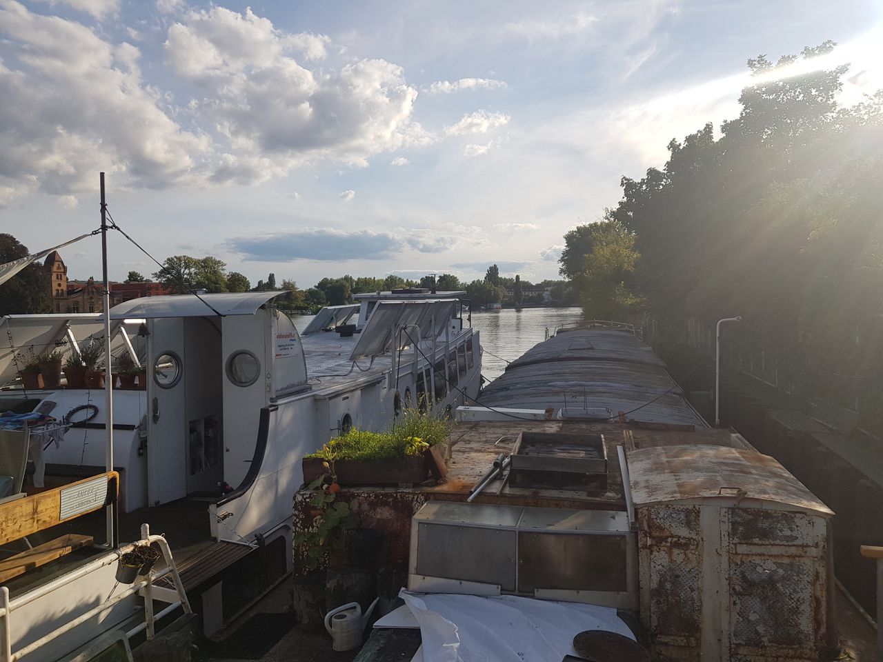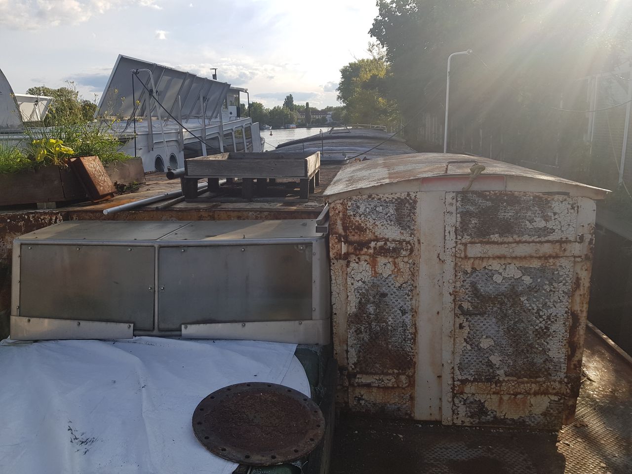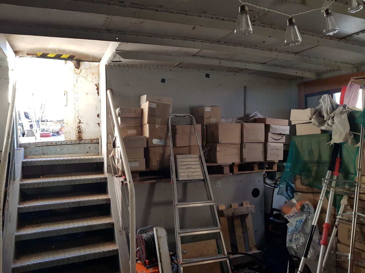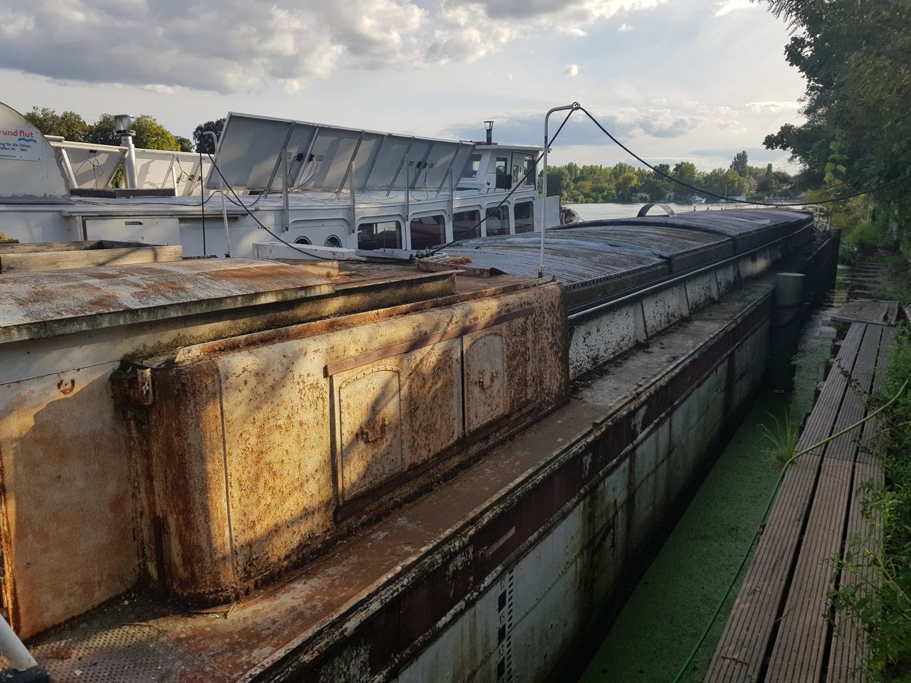 Die Edelweiß ist ein 36 m langes, 5 m breites Frachtschiff. Metallbau. Wellblechdach. Leer. Ohne Einbauten. Zwei kleine Decks.