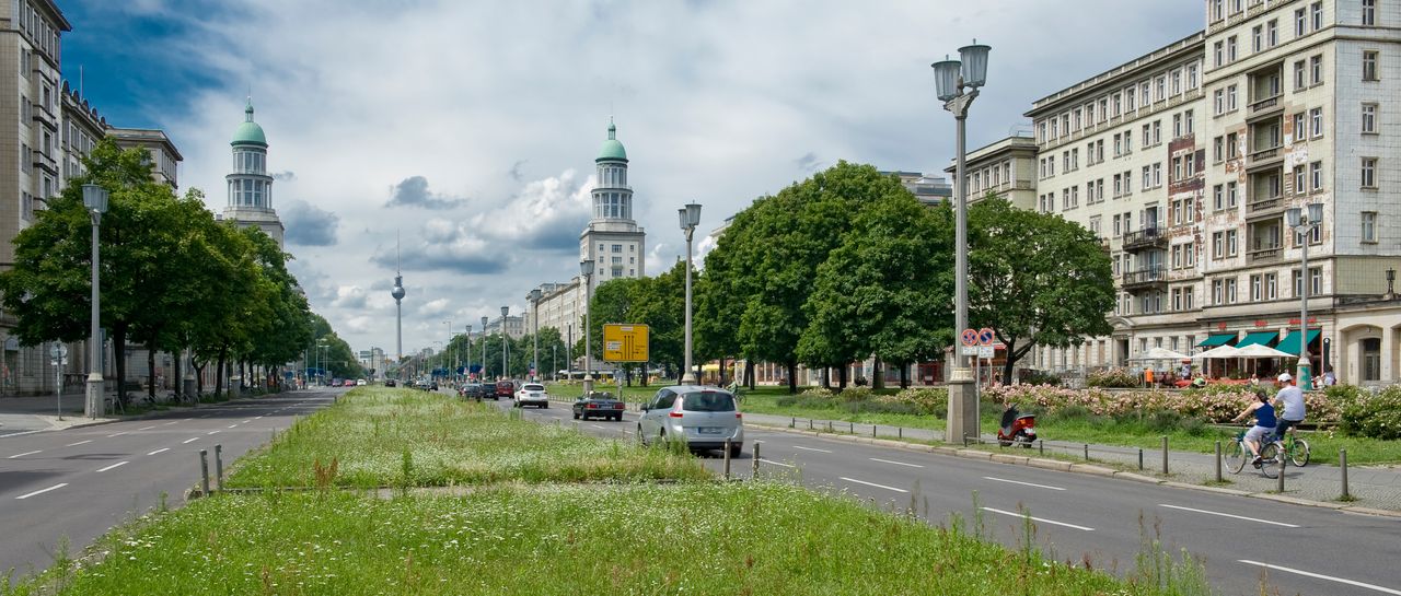 Zwischen Strausberger Platz und Frankfurter Tor entstand zwischen 1951 und 1964 diese Prachtstrasse des ehemaligen Ost-Berlins im Stil des sowjetischen Neoklassizismus. Hier begann 1953 mit dem Streik von 300 Bauarbeitern der Volksaufstand, der am Abend des 17. Juni von sowjetischen Panzern niedergeschlagen wurde.