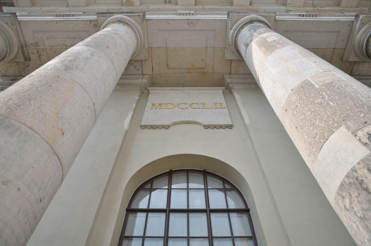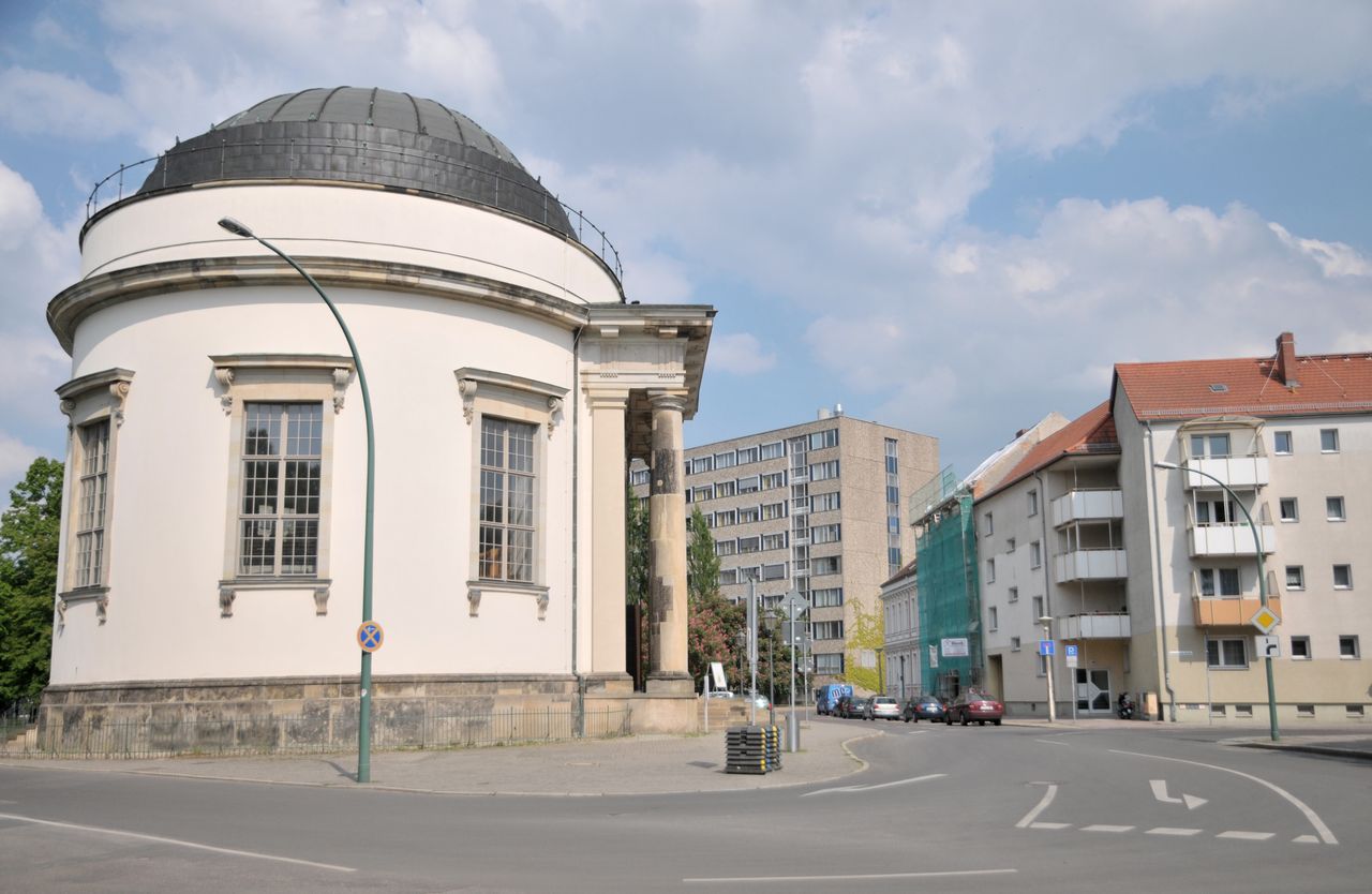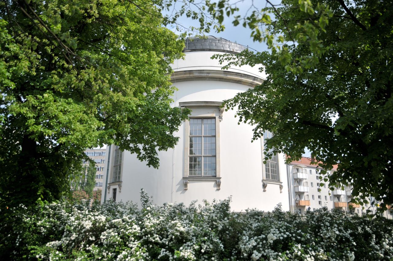 1750/53 erbaut, geht die Kirche auf einen Entwurf des Architekten von Schloß Sansscouci, Georg Wenzeslaus v. Knobelsdorff zurück. Es ist ein Zentralbau über querelliptischem Grundriß mit Flachkuppel, dem "Pantheon"-Typ stilistisch eng verwandt.