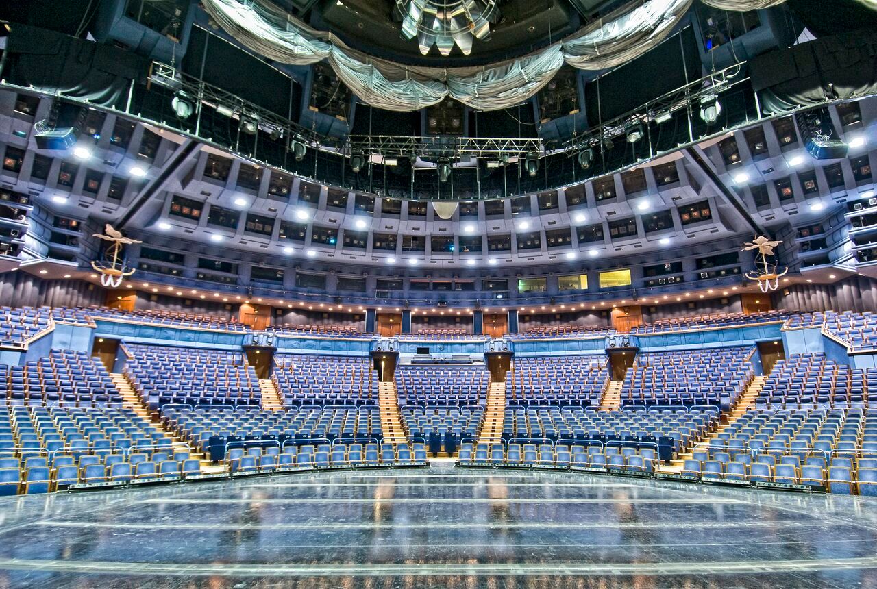 Die Vorbühne hat ein Hubpodium von 12 m Durchmesser mit Verwandlungsmöglichkeiten ineine Zirkusmanege, Eisarena, Tanzfläche und ein Wasserbecken. Dahinter öffnet sich das 24 m breite und 10 m hohe Bühnenportal zur Hauptbühne, einschließlich Seitenbühnen und Hinterbühne.