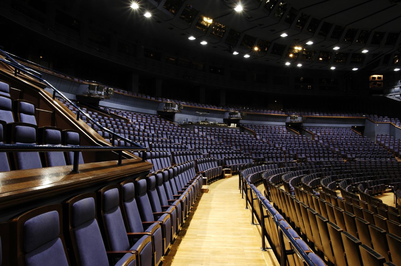 Erbaut 1981-84, befinden sich im vorgezogenen Teil die Eingangshalle und Foyers. Daran schließen sich der große Saal mit 1900 amphitheatralisch angeordneten Plätzen und das Bühnenhaus an.