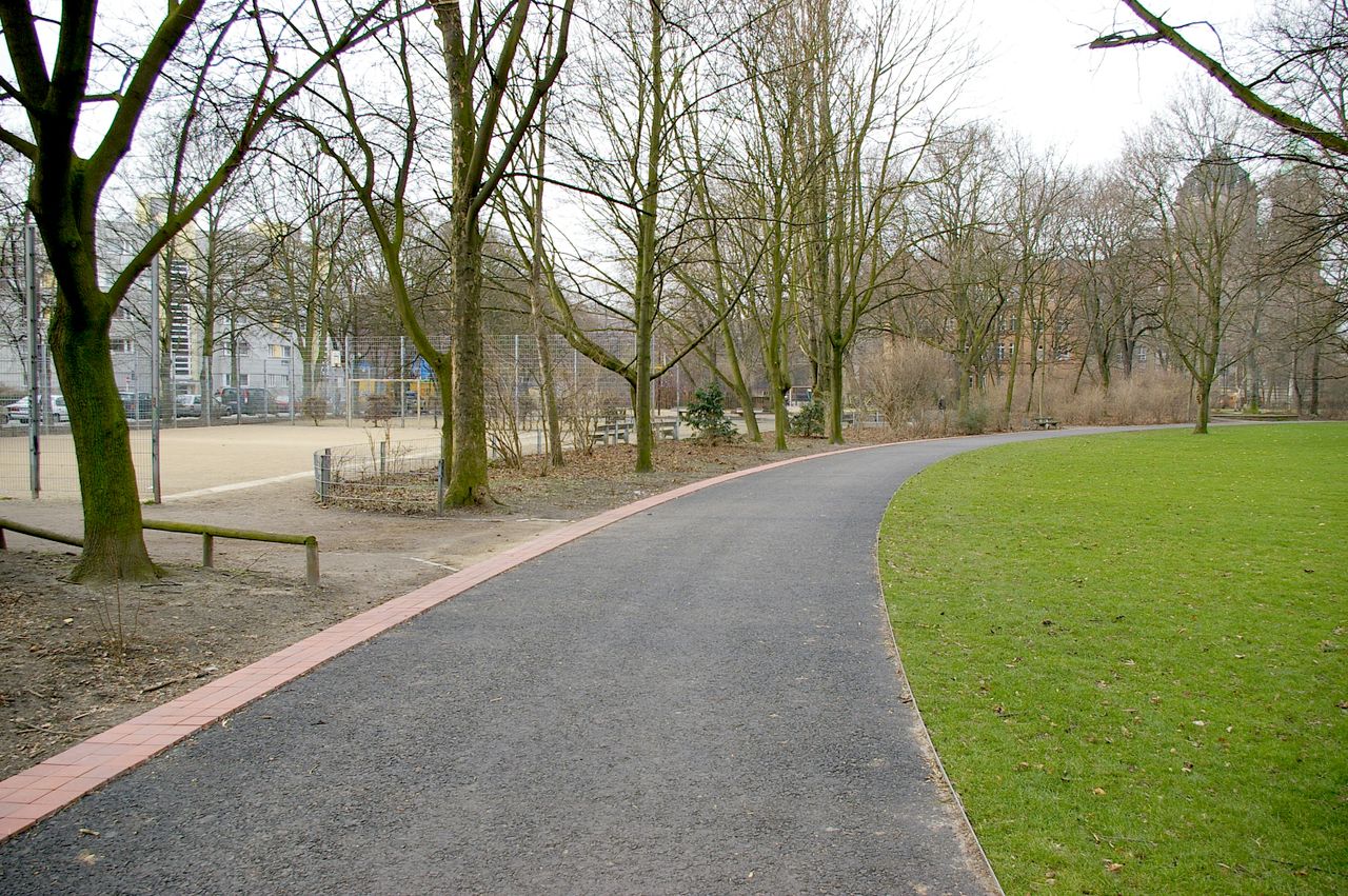 Direkt angrenzend an den Park befindet sich das Poststadion, mit dem Hauptstadion und dem Tribünengebäude, sowie weiteren Fußballplätzen, Tennisanlage an der Seydlitzstraße, Turn- und Ruderhalle im ehemaligen Hallenbad, Rollschuhbahn und Hallenbad an der Seydlitzstraße. Das Freibad wurde 2002 geschlossen und wird seit 2006 als innerstädtischer Campingplatz, "Tentstation", genutzt. Direkt am Park liegt auch der "Moabiter Kinder-Hof" (ein Kinderbauhof und Abenteuerspielplatz).
