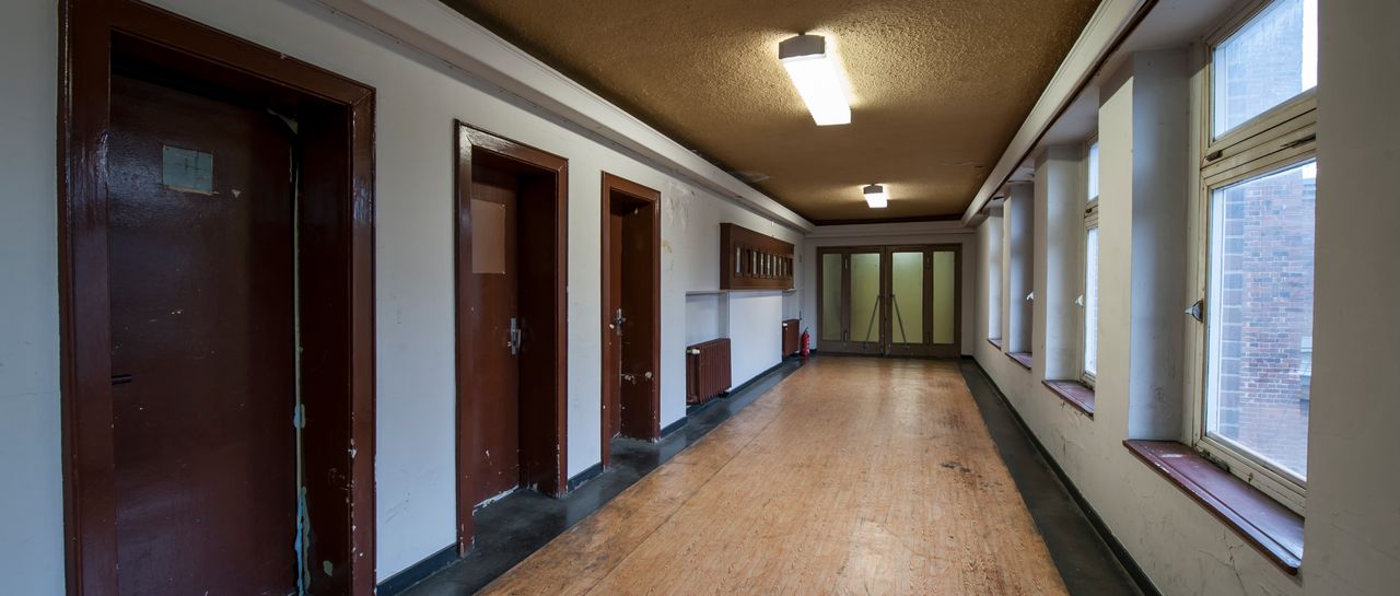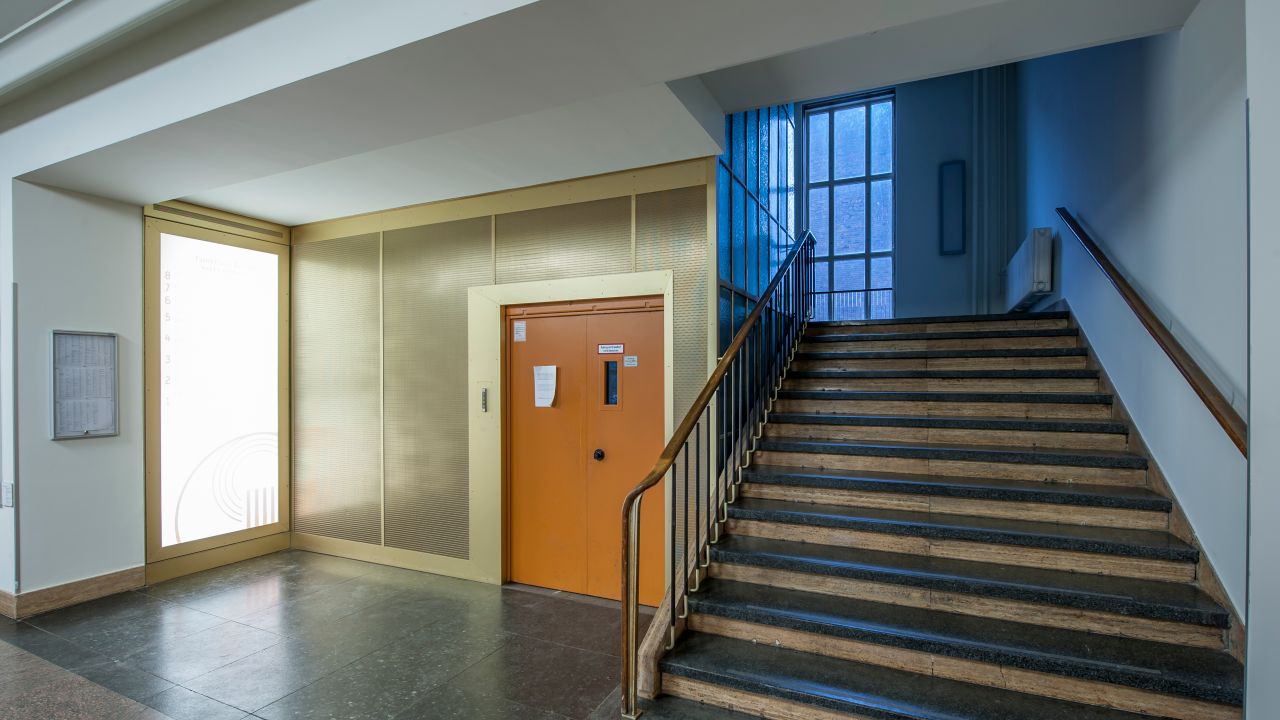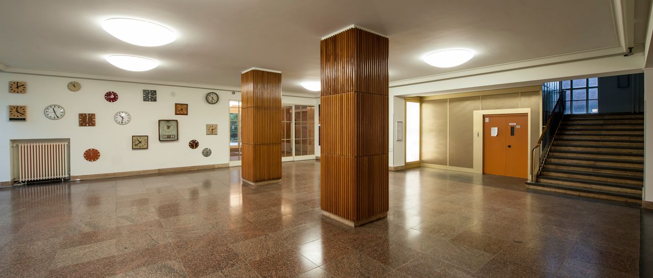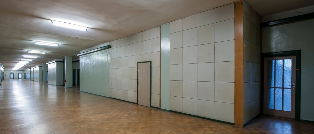 Das neunstöckige Hauptgebäude mit Backsteinfassade verfügt über ca. 100 m lange sehr breite Flure mit einer Vielzahl von Zimmern, darunter ein voll eingerichtetes, denkmalgeschütztes Konferenzzimmer. Die Lobby des Gebäudes ist saniert. Im angrenzenden, für seine Akustik berühmten, Studiogebäude in ungewöhnlicher Bogenform befinden sich einige Ton- und Hörspielstudios und zwei Aufnahmesäle. Der große Sendesaal 1 mit 900 qm hat 200 Sitzplätze und eine Orgel, die allerdings nicht funktionsfähig ist. Charakteristisch für das Studiogebäude ist die gut erhaltene, repräsentative Lobby mit Säulen und Marmorfußboden, die unter Denkmalschutz steht.