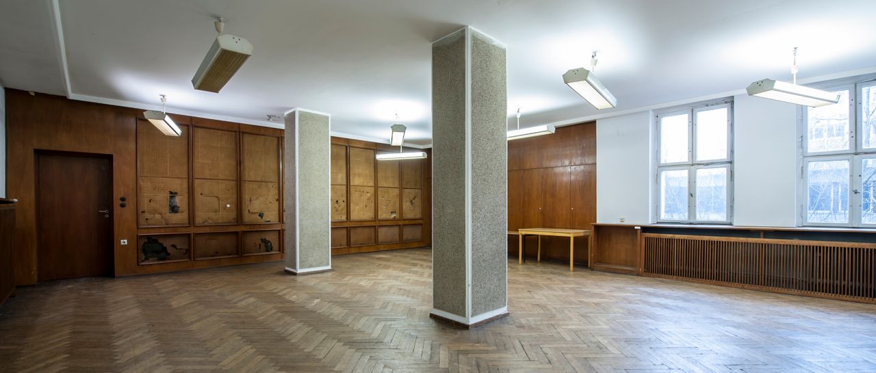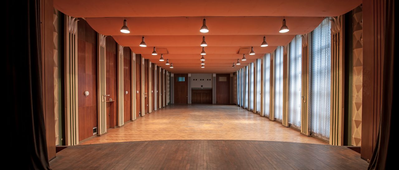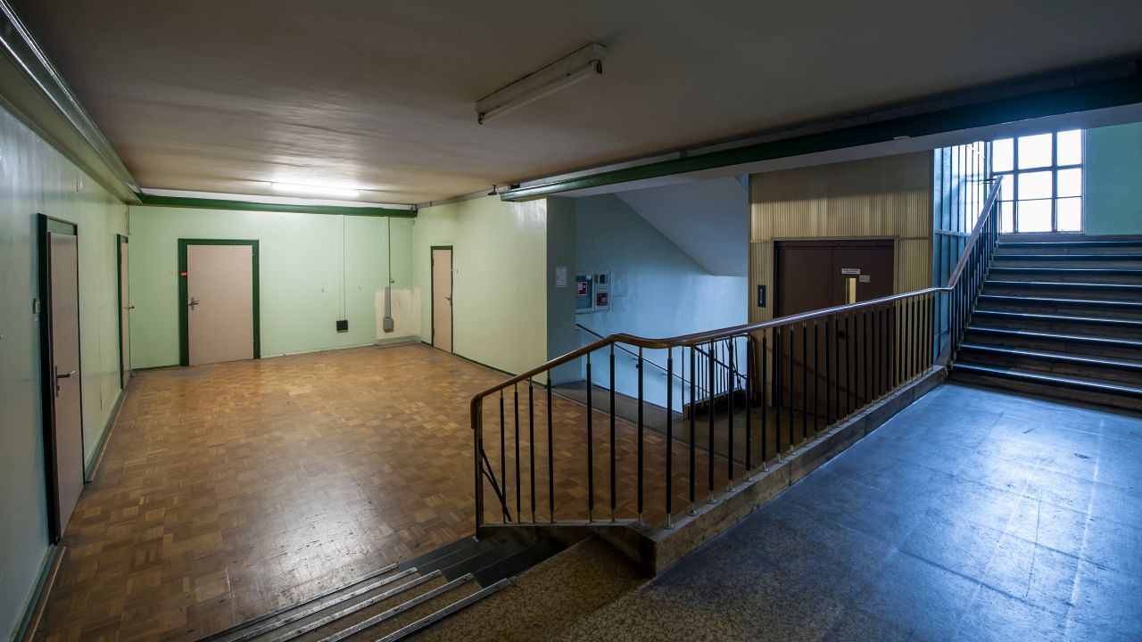 In einem dritten Gebäude befinden sich ein großer Theatersaal mit Bühne, der Platz für ca. 500 Personen bietet und eine ehemalige Kantine mit Platz für ca. 180 Personen. In diesem Gebäude gibt es eine repräsentative Eingangshalle mit großer Treppe. Direkt am Spreeufer liegt eine große Stahlbetonhalle mit Sheddach und dadurch guter Tageslichtausleuchtung. Die Deckenhöhe liegt zwischen 5 und 10 m, es besteht eine Zufahrtsmöglichkeit für LKW. Die Halle hat zur Spree hin eine schöne, denkmalgeschützte Fassade.