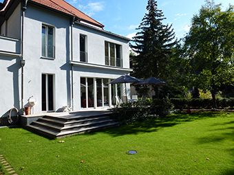 Die Garden Villa in Berlin-Zehlendorf in begehrter Alleinlage als Location für Film/-Foto & Videoshoots. Die Villa steht frei auf einem rund 1.200 qm großen Grundstück. Die Räume sind weitgehend offen gestaltet, vor allem im Erdgeschoss. Die Ausstattung des Objektes mit Echtholzböden und Betonsteinfliesen ist hochwertig. Vielseitig gestaltbar mit großem Garten.