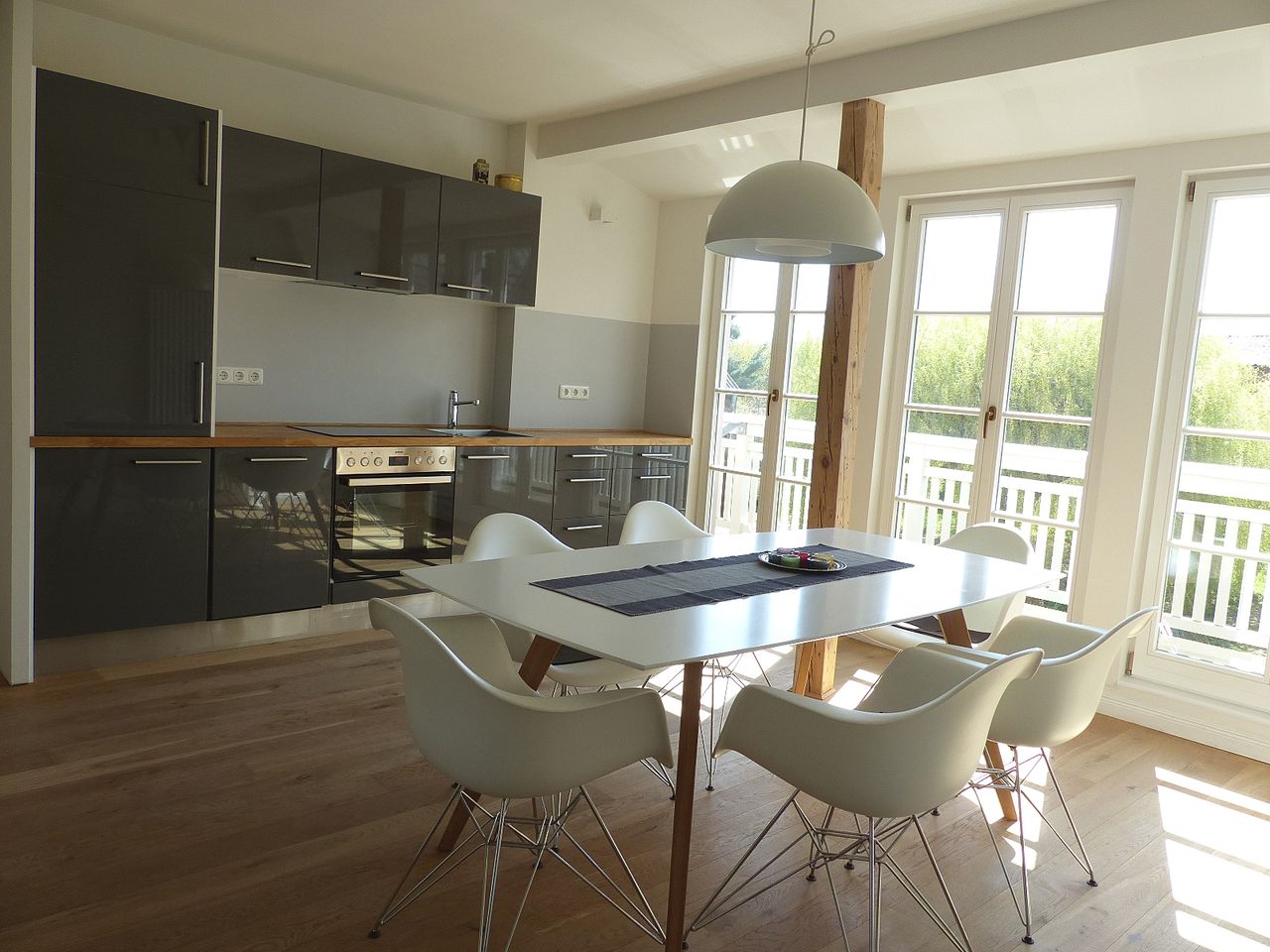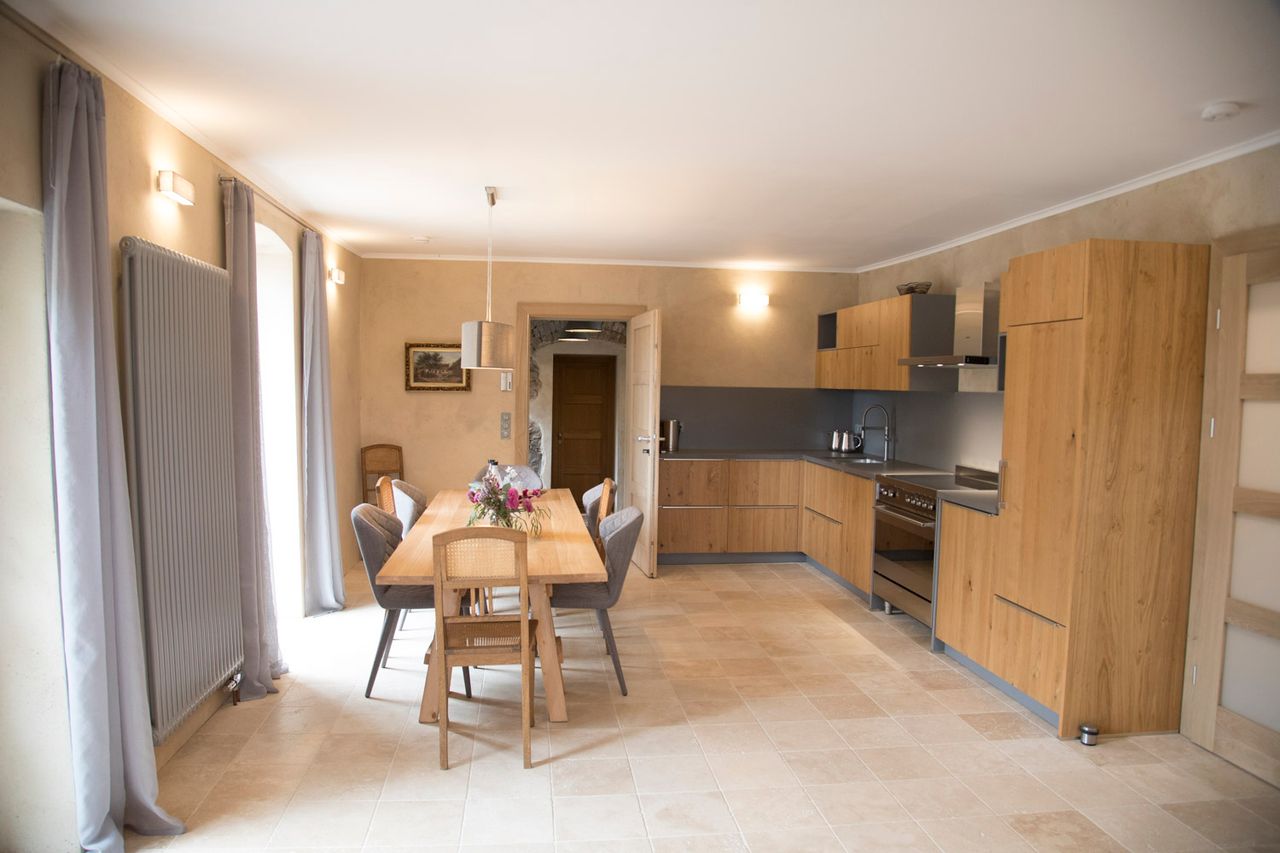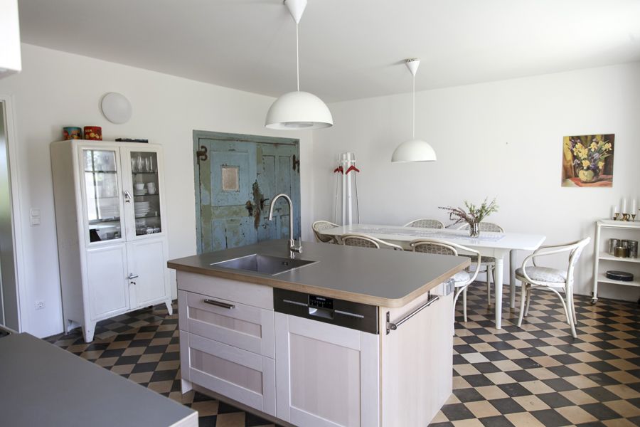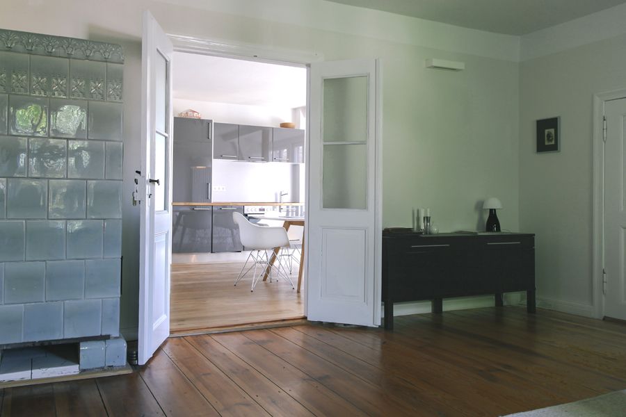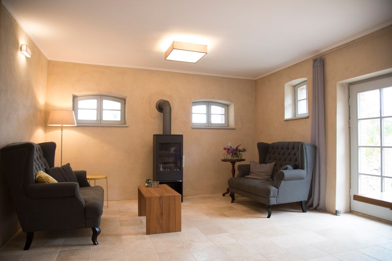 Gartenglück Wegendorf - typischer Brandenburgischer Vierseithof, bestehend aus dem Wohnhaus mit 2 großen Wohnungen im Landhausstil, mit zahlreichen historischen Details, dem ehemaligen Kuhstall mit dem Gartenloft (mit Flügel) und dem rustikalen Kutschflur, der großen Feldsteinscheune sowie dem "Leutehaus" mit der Maisonettewohnung.
