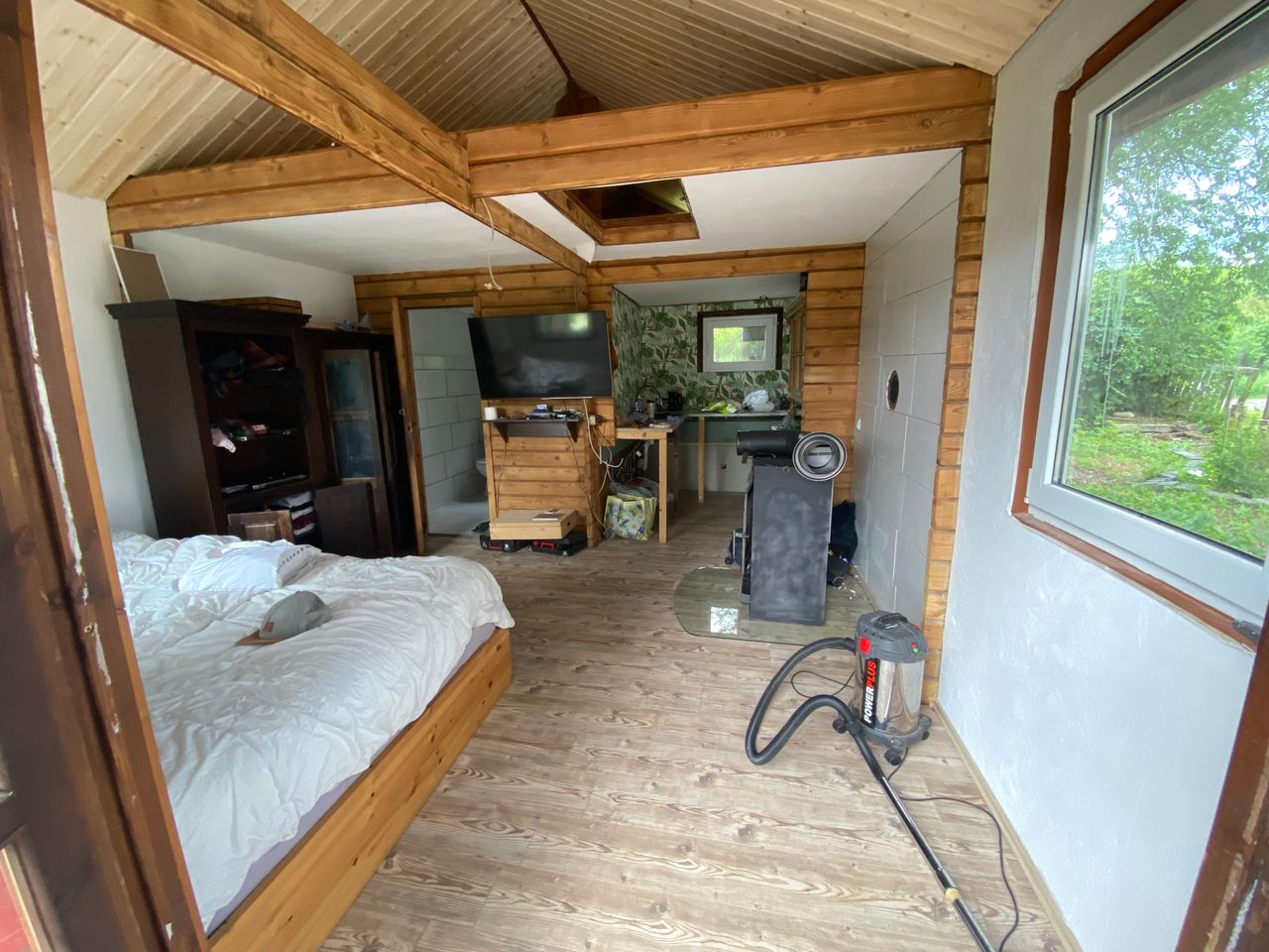 Die Hütte is von reines Holz gebaut hat, ein Kamin, kleine Küche, Bad mit Toilette, ca….)