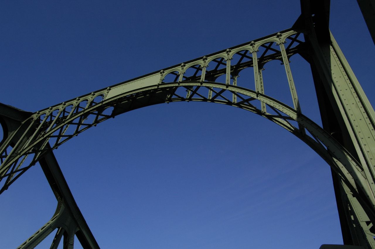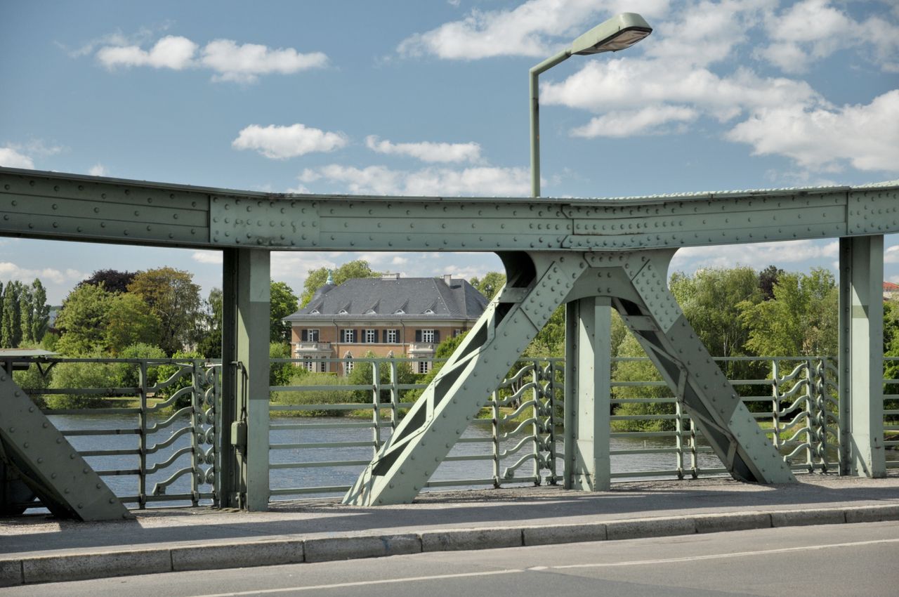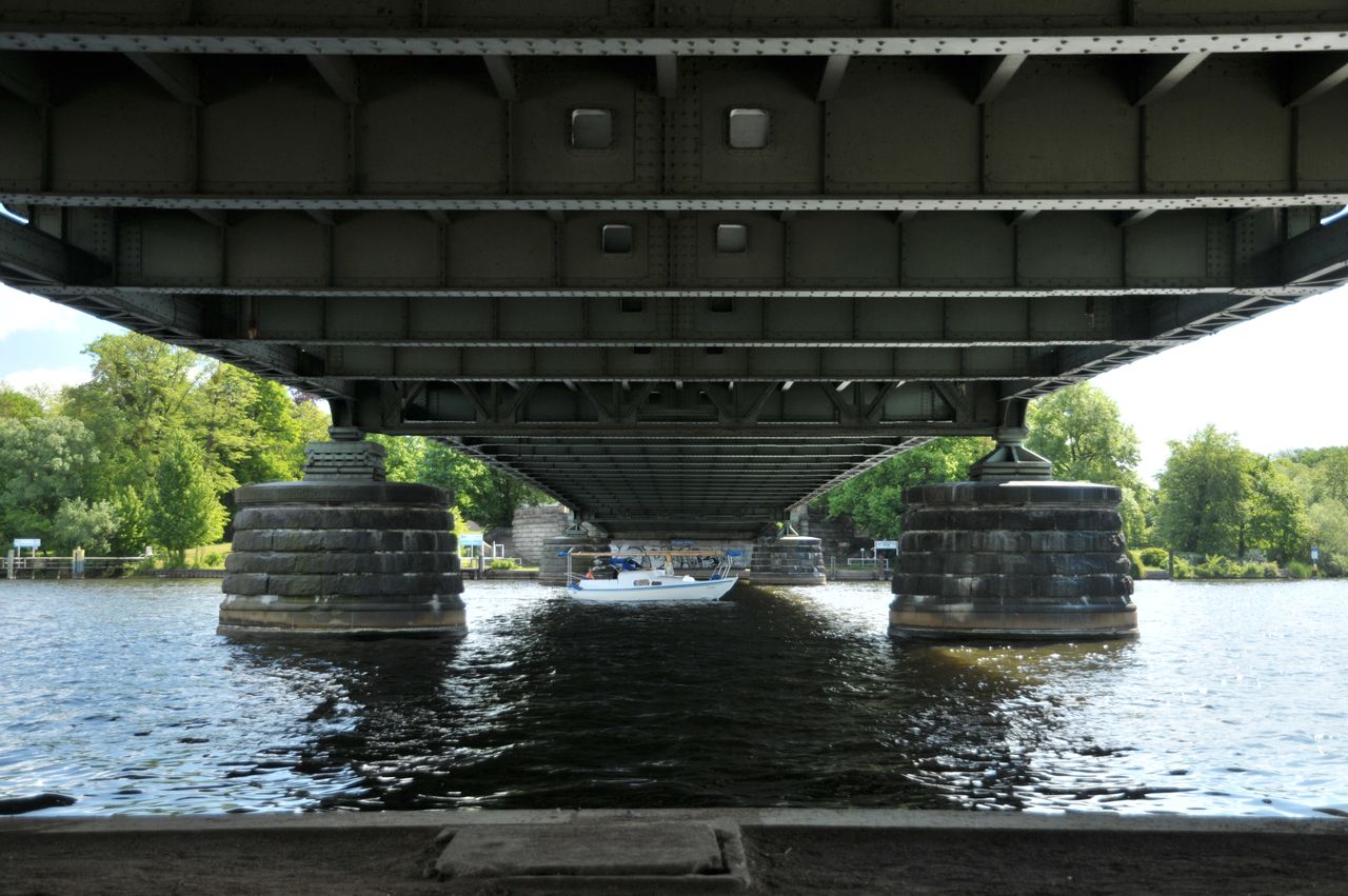 Stahlfachwerkbrücke über die Havel - berühmt durch Agentenaustausch zwischen Ost und West, der in der Zeit des Kalten Krieges regelmäßig hier stattfand. Die Grenze verlief exakt in der Mitte der Brücke, die auch “Brücke der Einheit” heißt. Stark befahren - wichtige Verbindungsstraße zwischen Berlin und Potsdam. Lage inmitten der Schloß- und Gartenlandschaft Glienicke und Babelsberg, mit wunderbarem Ausblick auf Schloß Babelsberg.