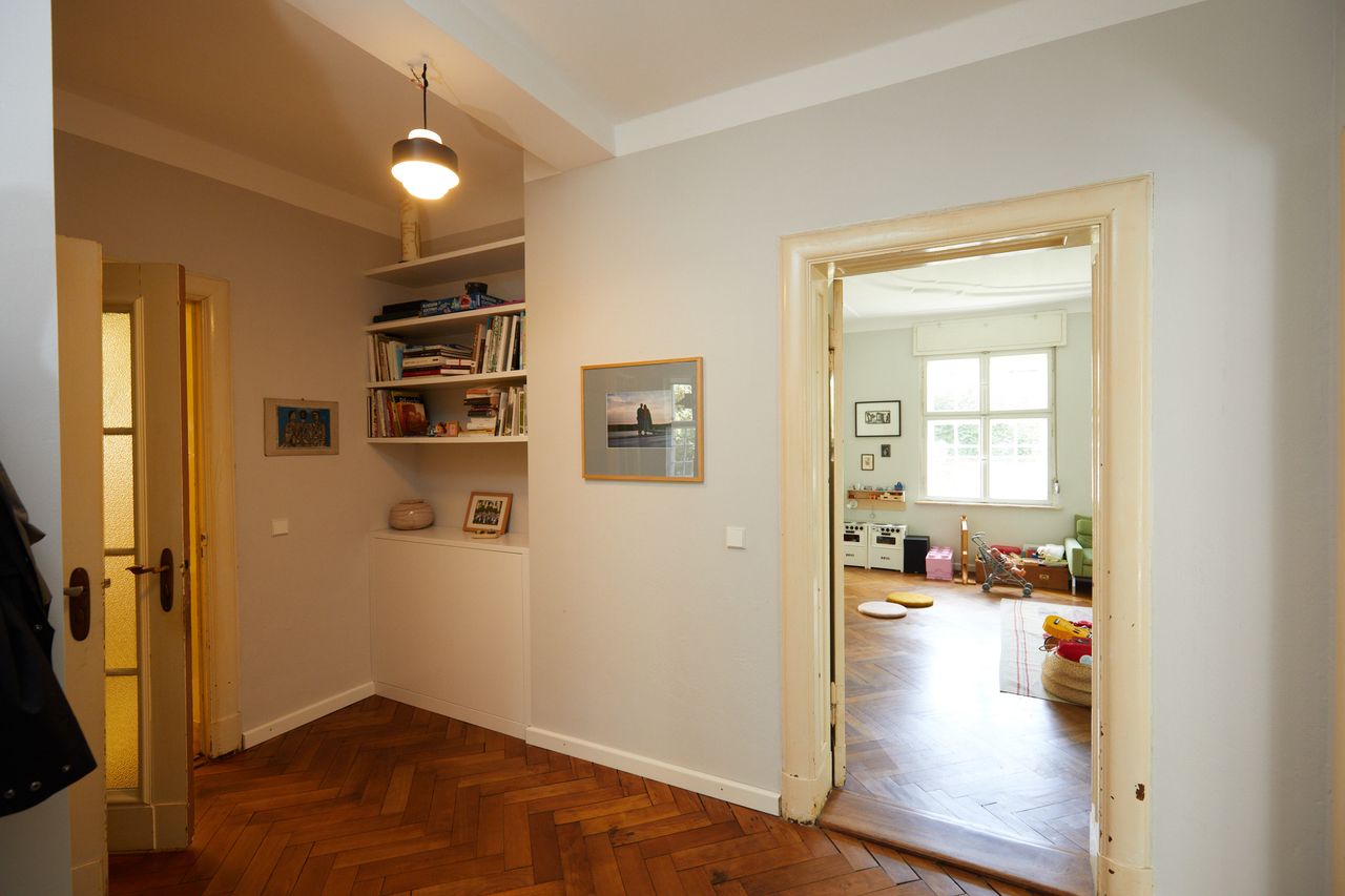 Kleine Villa mit vielen originalen Details wie Stuck, Parkett, Kassettenfenster und einer Säulenveranda – am Rande von Berlin. Liebevoll saniert und bewohnt von einer Familie. Modern ausgestattet. Küche und Bad benutzbar.