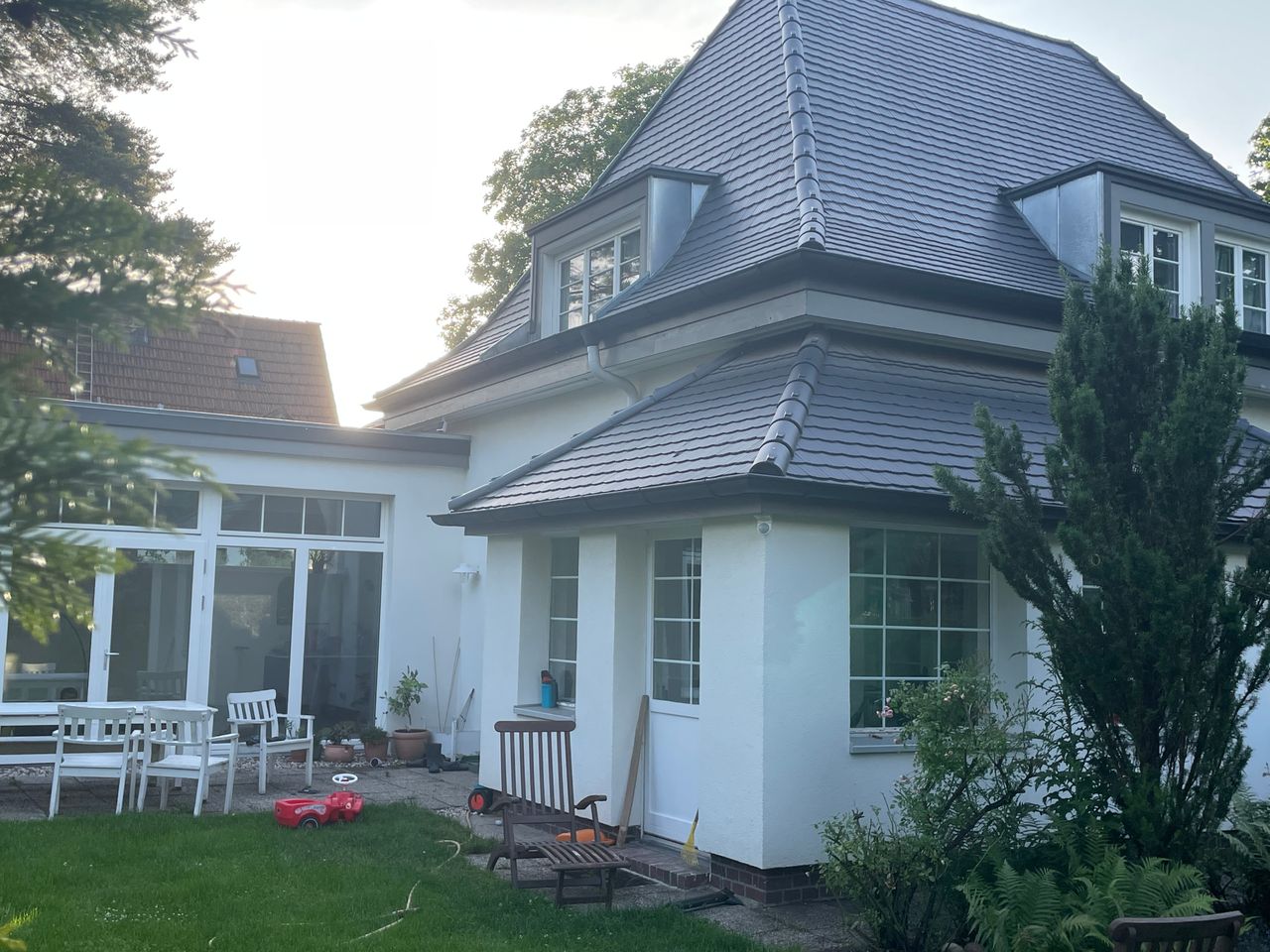 Sehr schönes, alleinstehendes Einfamilienhaus In ruhiger, grüner Einzelaage. Englischer Stil. Modernisiert. Eckgrundstück, daher ausreichend Parkmöglichkeiten. Modernisierung 2022 mit extravaganten Anbau.