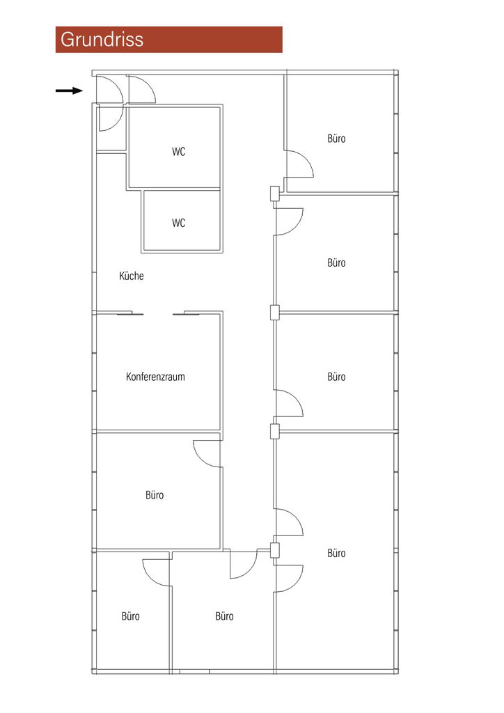 Die produktionserprobte Raumaufteilung erlaubt ein effektives Arbeiten. Die großzügigen, lichtdurchfluteten neun Räume ermöglichen bis zu 24 komplett ausgestattete Arbeitsplätze, inklusive Besprechungszimmer.