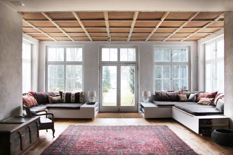 Im Gutshaus befinden sich auf ca. 650 m² Nutzfläche eine große Eingangshalle mit Kamin und angrenzendem Wintergarten der zum rückwärtigen Garten hinausführt, ein Rittersaal der als Gemeinschaftsbereich zum kochen und als Kaminzimmer dient, sowie einen großen Probenraum. Neben diesen Gemeinschaftsflächen gibt es 13 privat genutzte, individuell gestaltete Schlafbereiche mit Bad und weiteren Balkons sowie einen großen renovierten Dachboden. Eine große nach Süden hin ausgerichtete Terrasse verbindet den leicht ansteigenden Park mit dem Gutshaus und bietet die Möglichkeit, im Schatten der alten Bäume mit Blick über