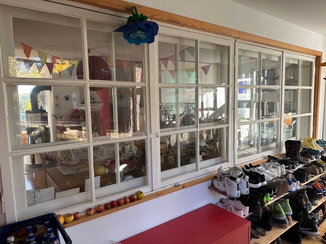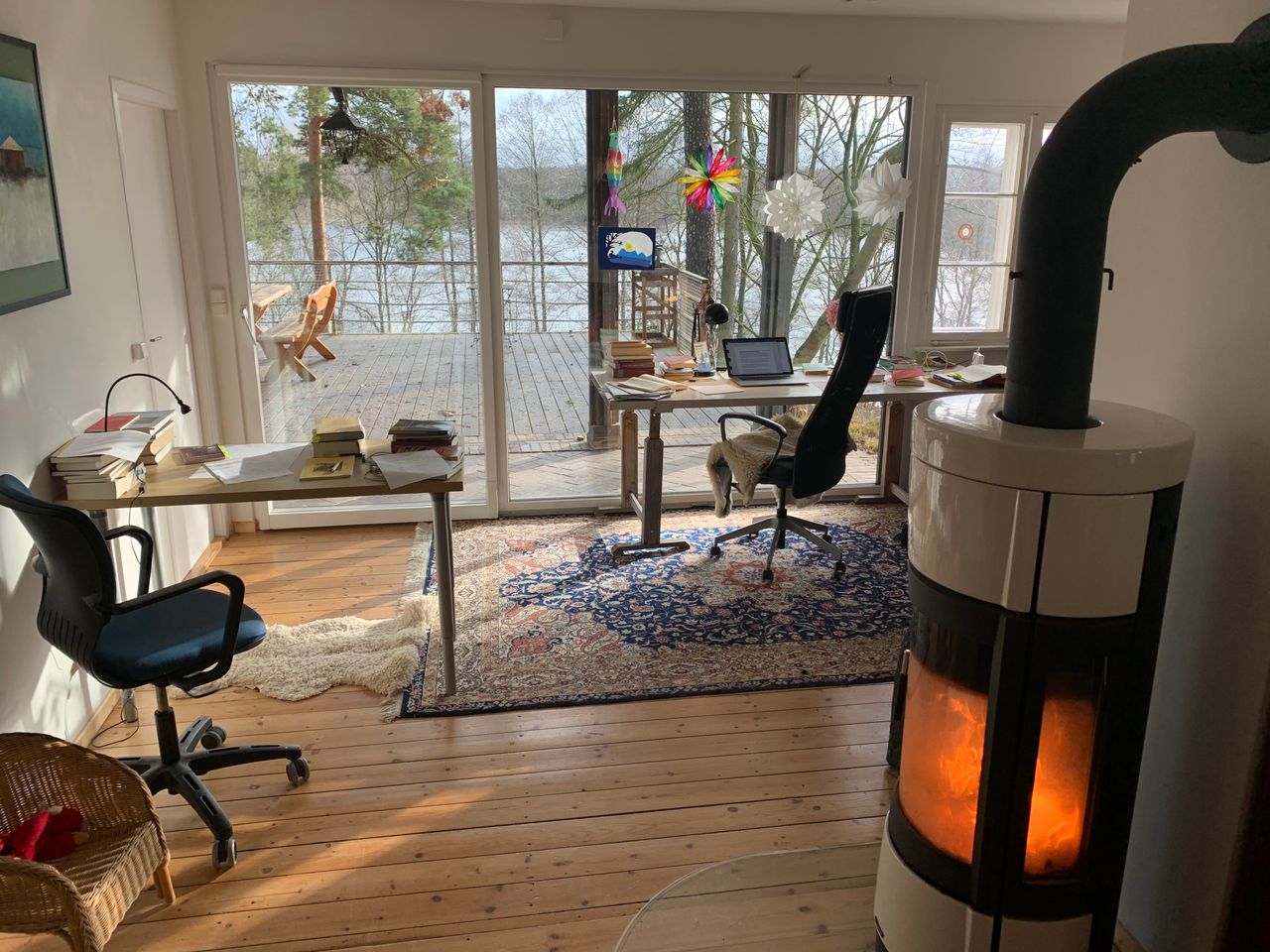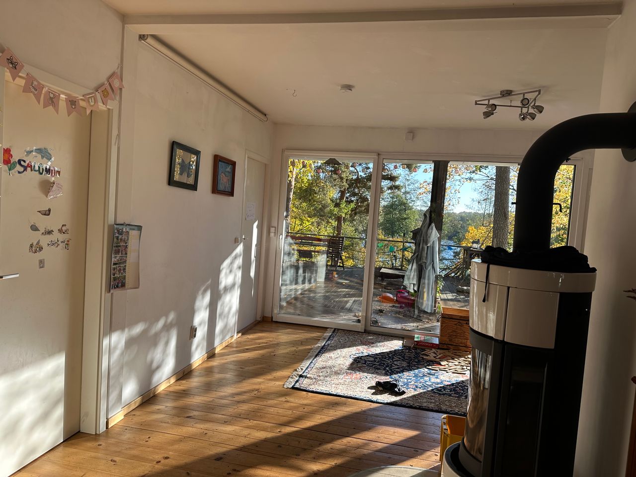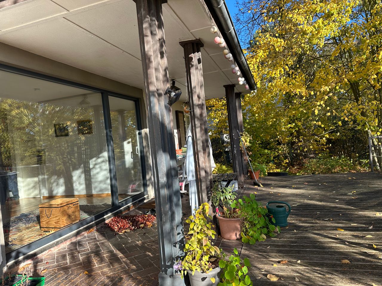 Das Grundstück ist mit 2500qm groß, am Hang gelegen, abfallend zum See mit Privatstrand. Am Hang steht eine freistehende Sauna. Die Kombination aus kleinem, historischem Häuschen und großem Panoramafenster neben 100 Jahre alten Doppelfenstern ist einmalig. Der Boden ist großteils original aus den 20er Jahren – Stein-Klinker und Holzdielen.