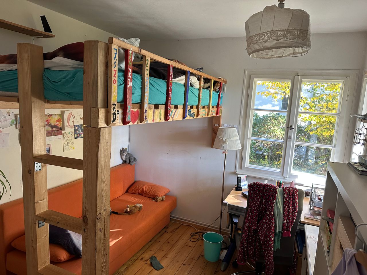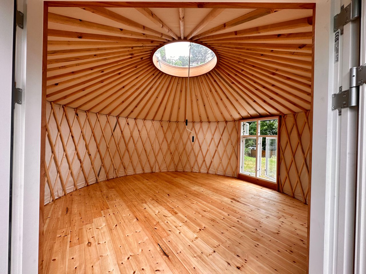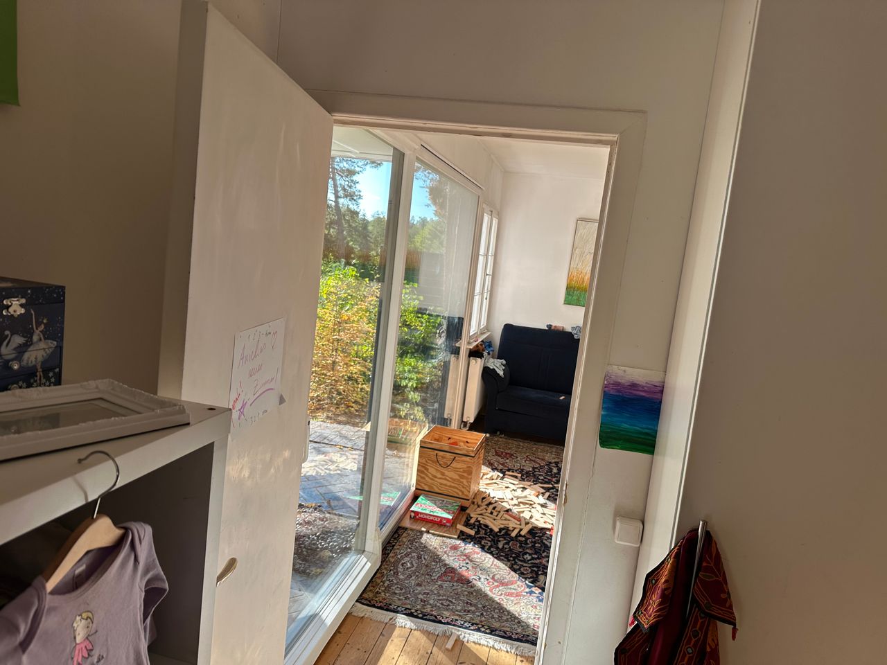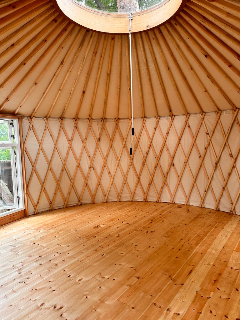 Es handelt sich um ein Sommerhaus am Groß Glienicker See – gebaut in den 20er Jahren sowie zwei moderne Jurten mit Heizung durch Wärmepumpe im Garten. Das Haus hat 3 Schlafzimmer, ein offenes Wohn-/Esszimmer und ein Bad. Ein Kamin steht im Wohnzimmer. Die Jurten sind je 20qm2 groß.