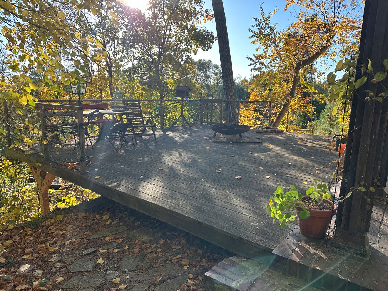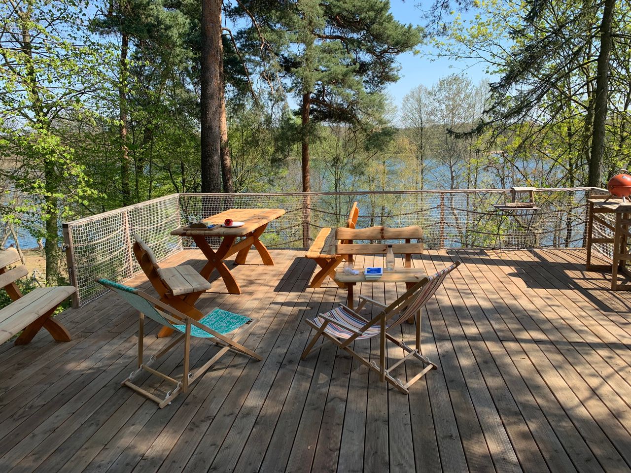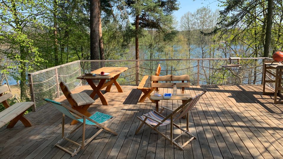 Die riesige Holzterrasse über dem Hang bietet eine einmalige Kulisse über dem See.