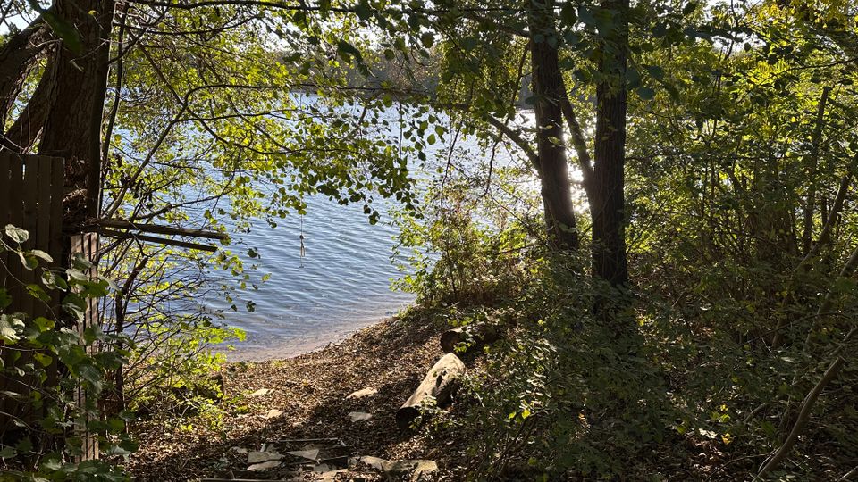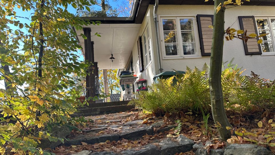 Das kleine Haus st umgeben von riesigen Villen. Der Blick über den See ist im Winter (laubfrei) gigantisch, im Sommer ist der See die große Attraktion. Die 15 über 25m hohen Kiefern auf dem Grundstück geben einen südlichen Flair. Es ist eines der letzten Häuser in der alten Bauweise.