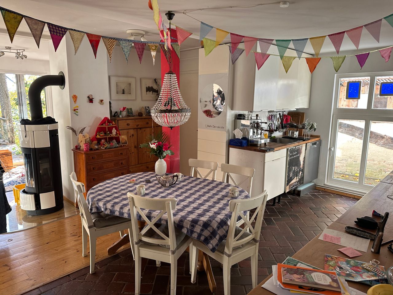 Wir wohnen hier als fünfköpfige Familie – Mutter 43/Vater 42, Tochter 12/Tochter 11/ Sohn 8 Jahre alt. Wir sind im Haus Nichtraucher – für Filmaufnahmen würden wir Rauchen in de Räumen dulden, nicht aber für die Crew.