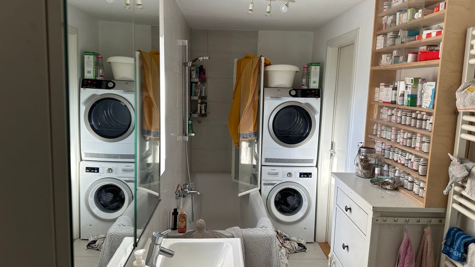 Wir wohnen hier als fünfköpfige Familie – Mutter 43/Vater 42, Tochter 12/Tochter 11/ Sohn 8 Jahre alt. Wir sind im Haus Nichtraucher – für Filmaufnahmen würden wir Rauchen in de Räumen dulden, nicht aber für die Crew.
