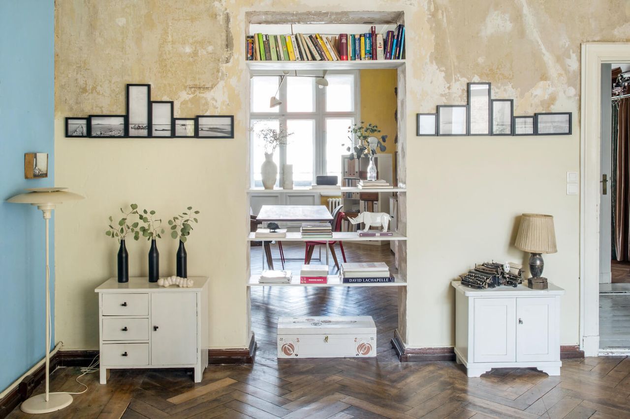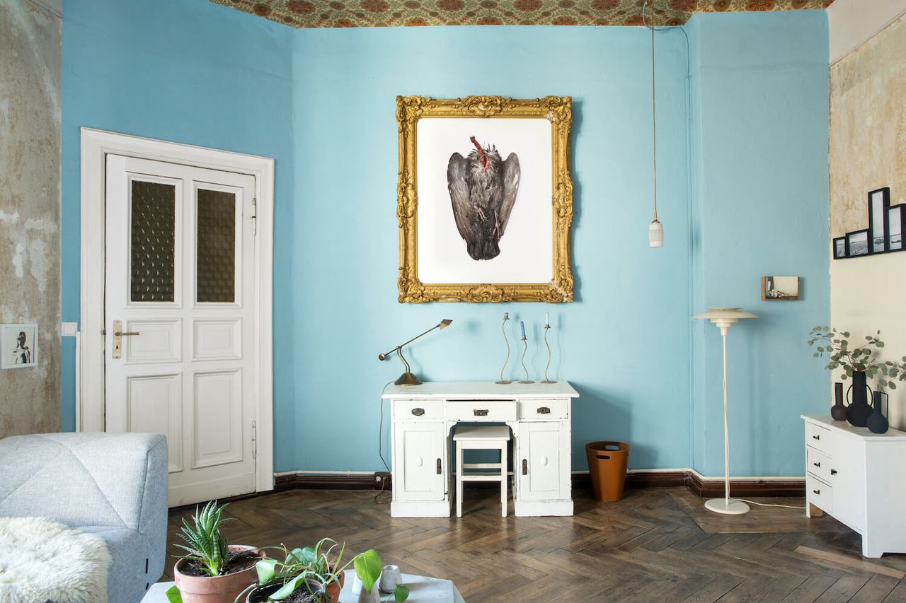 With all of the furniture and decorative items being handed down from the owner’s family and friends, this sun-soaked Home Studio interweaves multiple historical periods, creating an extraordinary sense of timelessness. Raw walls cut against untouched vintage wallpaper whilst ornate gold mirrors and baroque styled frames juxtapose explicit cartoons, balancing the archaic with the artistically absurd.