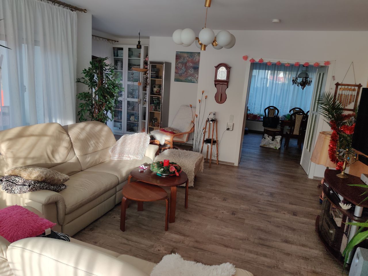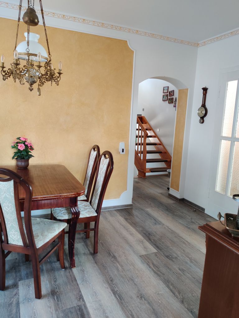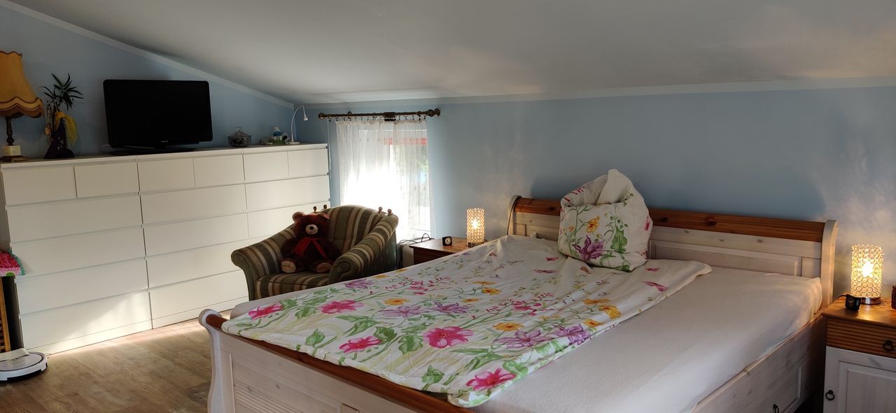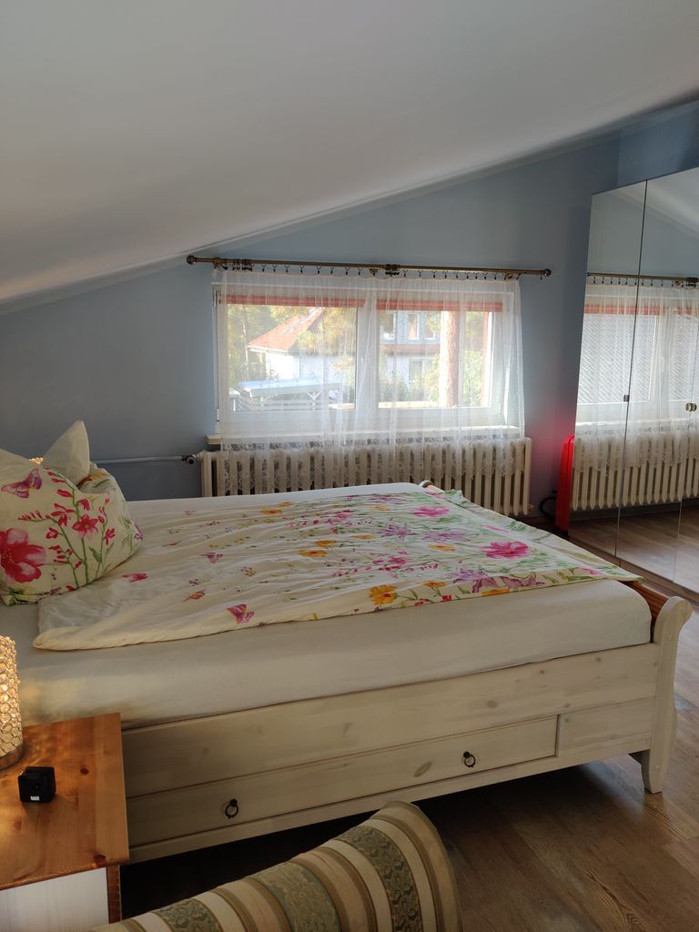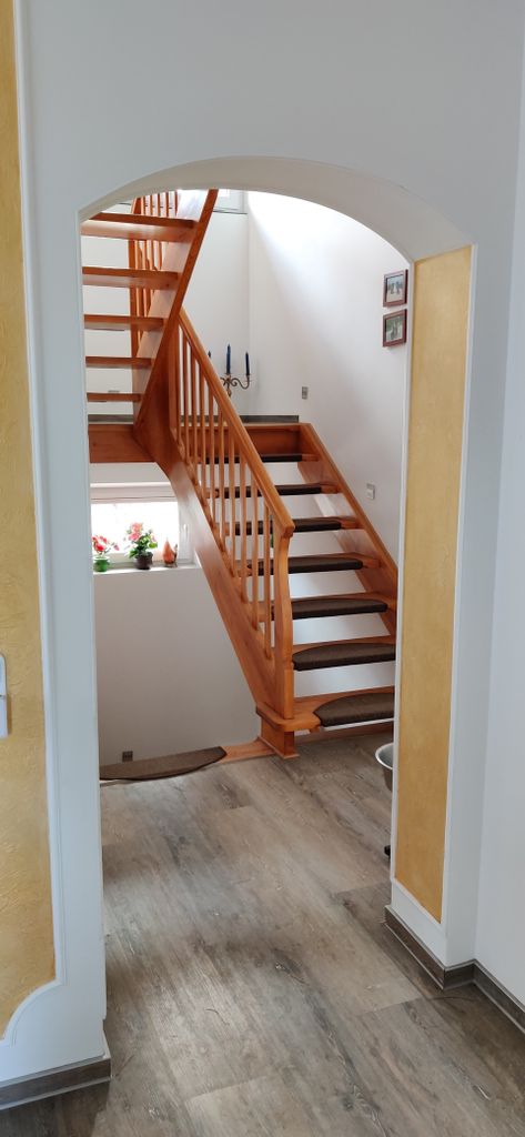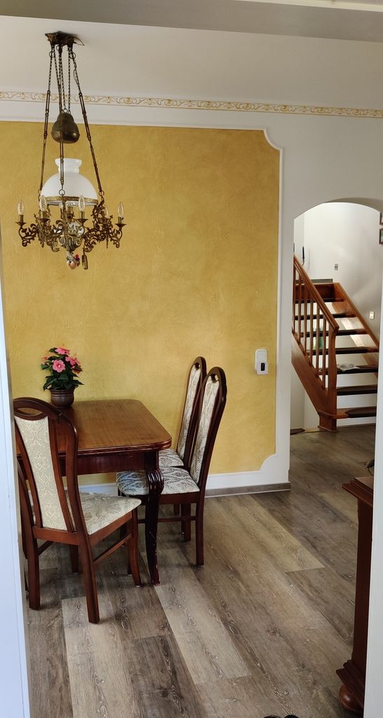 Das Haus wurde 1980 erbaut. Der Architekt dieses Hauses ist derselbe Architekt, der den Berliner Fernsehturm entworfen hat. Ich habe das Haus 2019 gekauft und in den letzten zwei Jahren kernsaniert und mit sehr viel Liebe und Herz eingerichtet. Meine persönlichen Highlights ist die Küche und das Bad. Aber auch alle anderen Zimmer haben sehr viel Wärme. Im Erdgeschoss befindet sich ein Gästezimmer, ein Esszimmer und ein Wohnzimmer. Wohnzimmer wird demnächst einen Kamin eingebaut. Ebenfalls gibt es eine kleine Toilette und die große Küche. Das Treppenhaus verbindet den Keller mit dem Obergeschoss. Im Obergeschoss befindet sich das große Bad, 1 Schlafzimmer und ein großes Zimmer, welches auf der einen Seite das Büro beherbergt und auf der anderen Seite die Sauna mit Massagesessel und Bücherregalen.