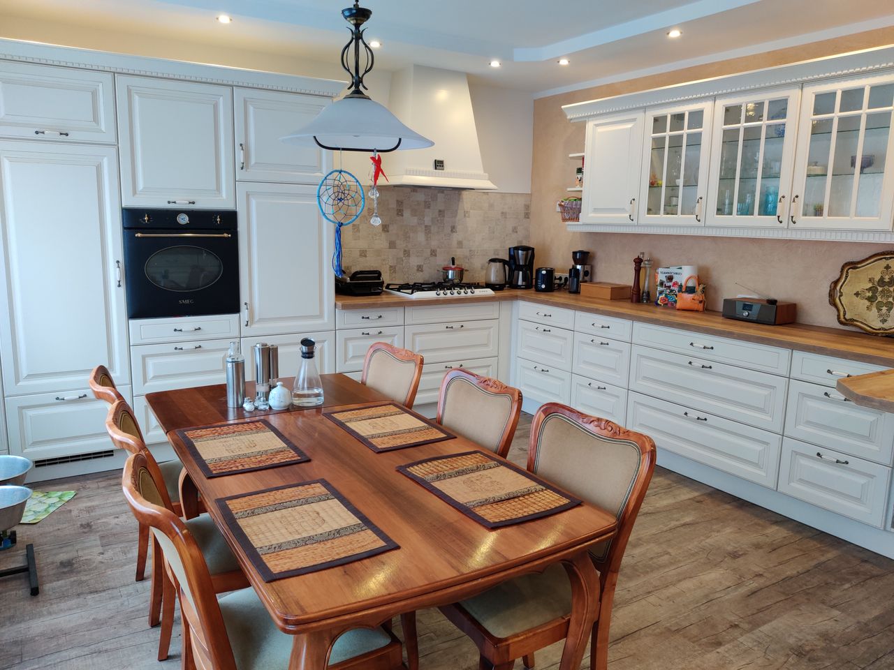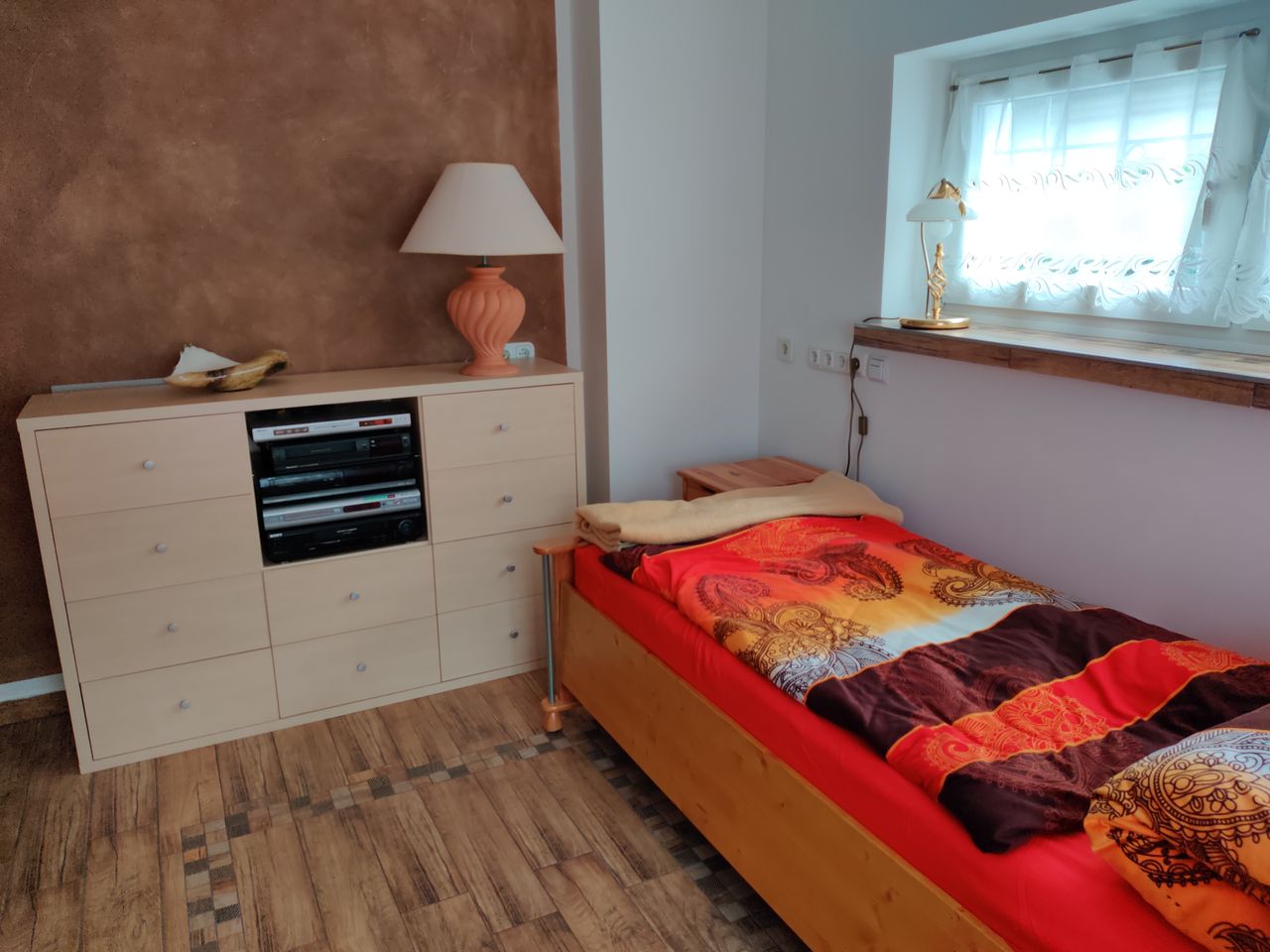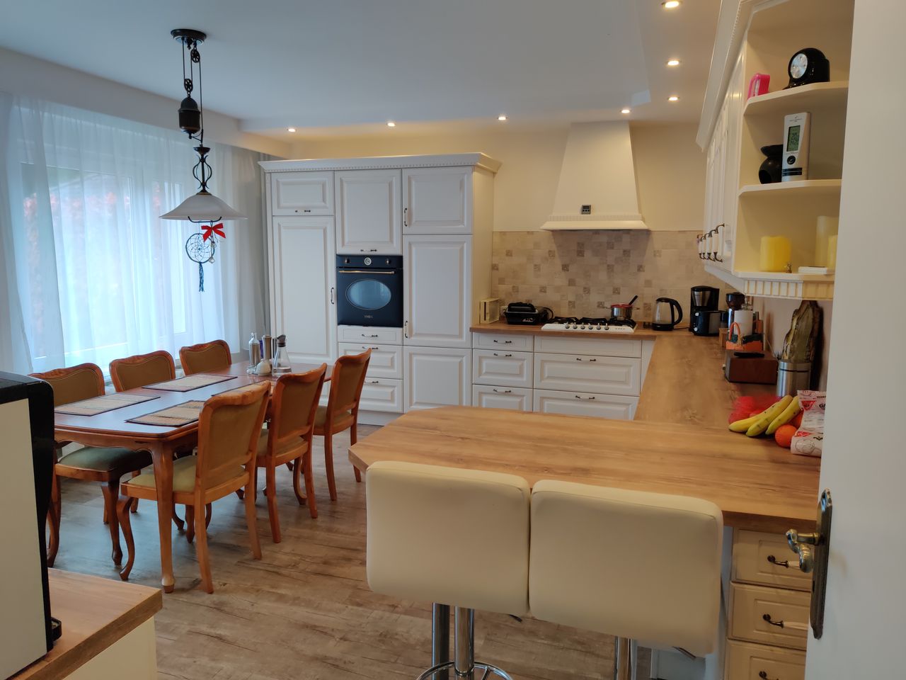 Das Haus wurde 1980 erbaut. Der Architekt dieses Hauses ist derselbe Architekt, der den Berliner Fernsehturm entworfen hat. Ich habe das Haus 2019 gekauft und in den letzten zwei Jahren kernsaniert und mit sehr viel Liebe und Herz eingerichtet. Meine persönlichen Highlights ist die Küche und das Bad. Aber auch alle anderen Zimmer haben sehr viel Wärme. Im Erdgeschoss befindet sich ein Gästezimmer, ein Esszimmer und ein Wohnzimmer. Wohnzimmer wird demnächst einen Kamin eingebaut. Ebenfalls gibt es eine kleine Toilette und die große Küche. Das Treppenhaus verbindet den Keller mit dem Obergeschoss. Im Obergeschoss befindet sich das große Bad, 1 Schlafzimmer und ein großes Zimmer, welches auf der einen Seite das Büro beherbergt und auf der anderen Seite die Sauna mit Massagesessel und Bücherregalen.