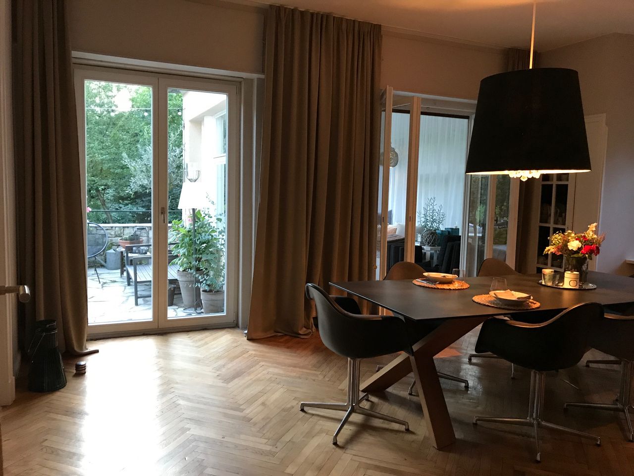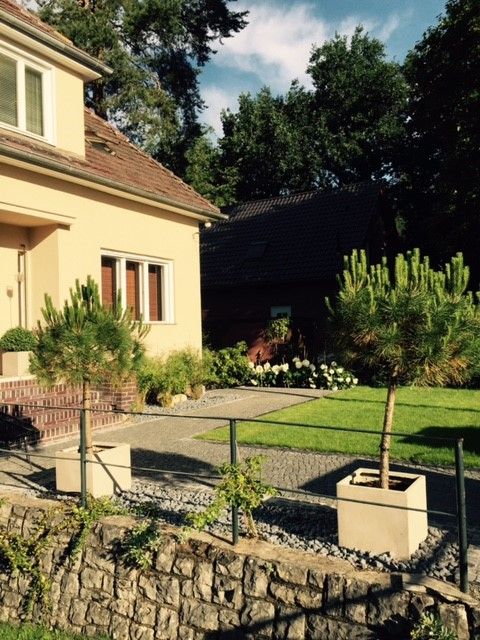 Haus / Villa in zentraler Lage, 6km nach Potsdam in Wilhemshorst (Michendorf) 250qm Wohnfläche 1300qm Garten Gesamte Haus verfügt über viele original erhaltene Elemente aus den 30er Jahren. Komplett renoviert, Baujahr 1936 Vollunterkellert mit Tiefgarage, Sauna EG: - Küche mit modernem Küchenblock, Einbauschränke Original 30er Jahre - Wohnzimmer mit eingebauten Wandregalen, original, altes Parkett Fischgrät) - Eßzimmer mit eingebauten Wandvitrinen, Parkett Fischgrät, original - angrenzender Wintergarten, alles original, mit Blick in der Garten/Terrasse, Solnhofer Platten - Terrasse ca. 1m hoch gebaut, 45qm, Blick in den Garten Garten ca 1300qm. Treppenhaus mit Original-Treppe & Handlauf 30er Jahre OG: - Schlafzimmer mit angrenzendem Bad, neues Parkett, neues Bad, Sichtbeton - Ankleidezimmer - Arbeitszimmer/Aufenthaltsraum - Gästezimmer - weitere Badezimmer mit Badewanne