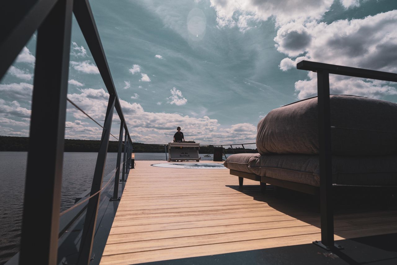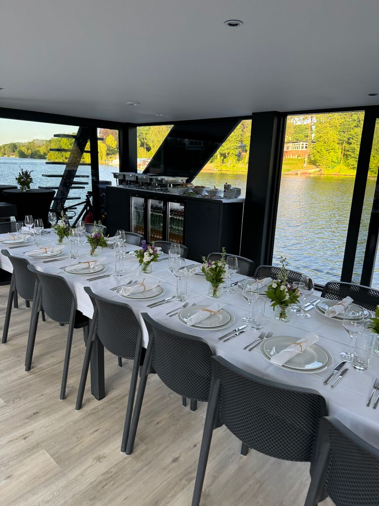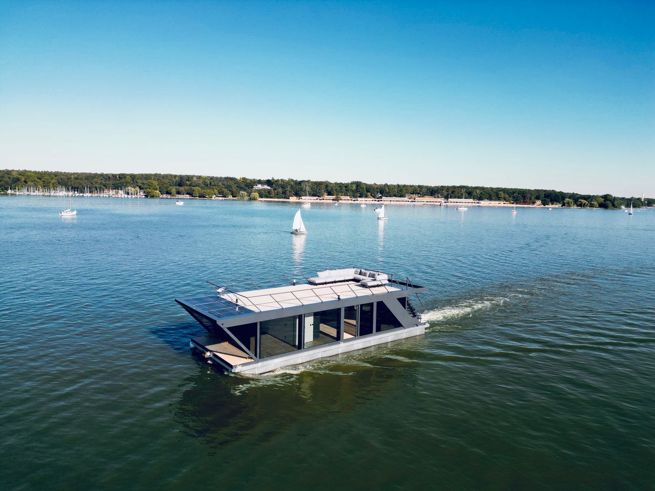 Modernes Haus- / Eventboot auf der Havel mit der Möglichkeit zu fahren. Große Terrasse + modernes Interieur.