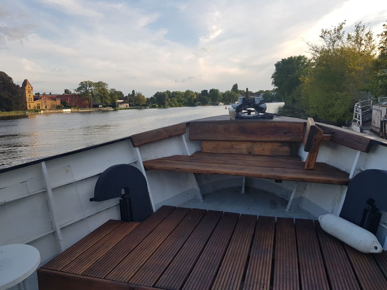 Ich lebe und arbeite auf einem Haus- und Seminarschiff, umgebautes DDR Marineschiff, das jetzt eine Art Loft auf dem Wasser ist.