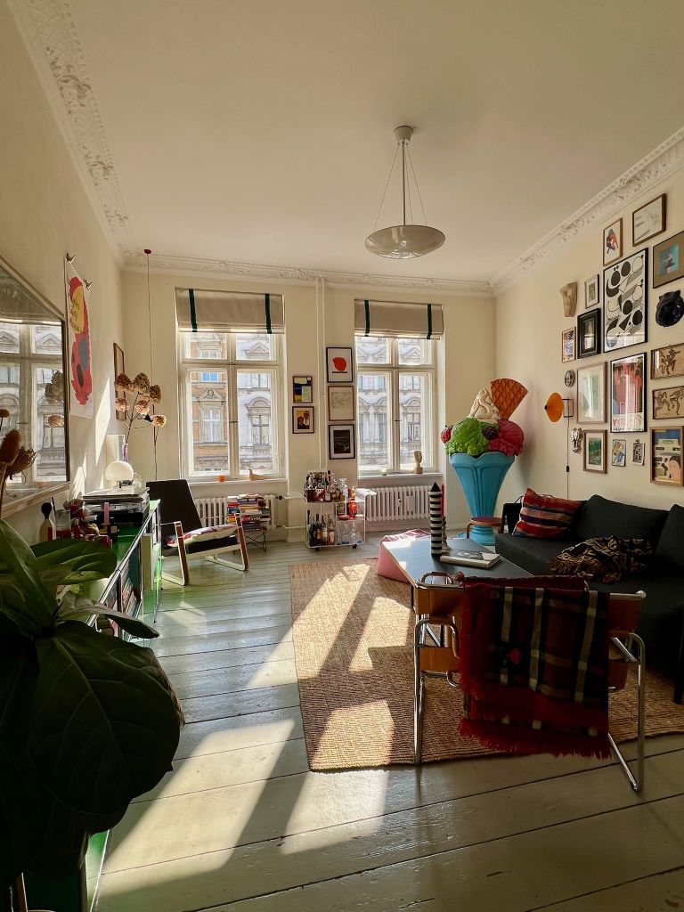Eingerichtet mit vielen Designklassikern, Flohmarktfunden und Reisemitbringseln bietet sie einen eklektischen Mix und ein interessantes Setting für Film und Foto.