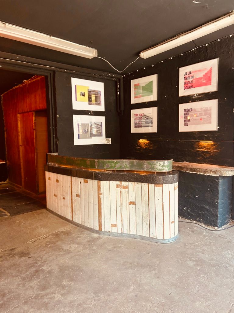 Die alte Steinmetz Werkstatt mitten in Neukölln haben wir zu einer Bar umgebaut. Es gibt neben einen Haupt Bar Raum mit den angeschkossenen Toiletten gibt es noch drei Nebenräume. Der größte davon wird hauptsächlich als Ausstellungsraum genutzt. Die Außenfläche ist frei gestaltbar .
