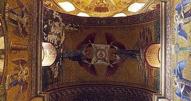 Straßenfrontkirche mit vollständig erhaltener Innenausmalung und -ausstattung im neoromanischen Stil; 1898 erbaut; Gesamtkunstwerk der wilhelminischen Zeitepoche; Sakristei mit Holzverkleideten Wänden und Einbauten aus der Erbauungszeit; Kirche vollständig unterkellert.
