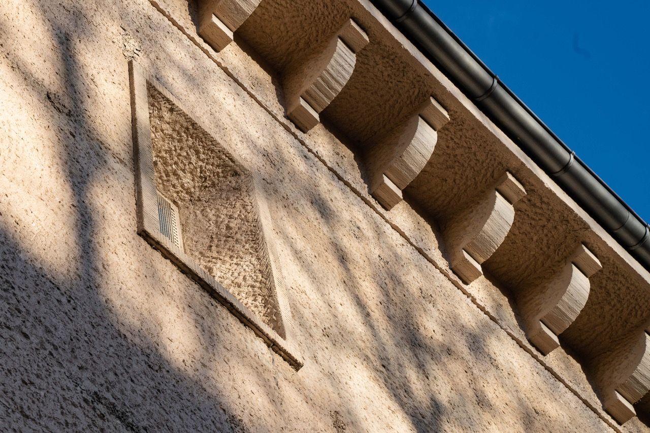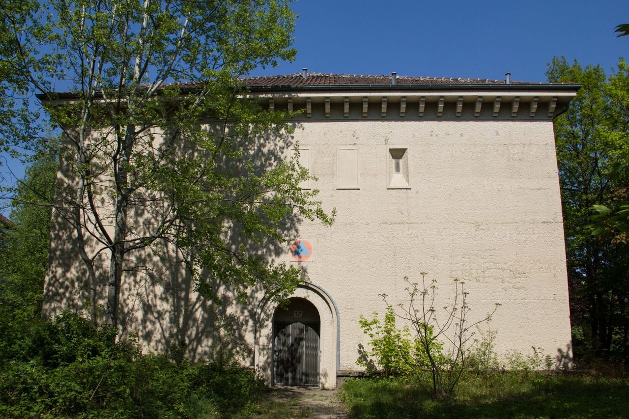 Hochbunker aus 1942 vom Bautyp "M500" Mit einer Grundfläche von 36,7 m x 20,5 m = rd. 752qm. Die Nutzfläche von rd. 1.500qm verteilt sich auf drei Geschosse und ein nicht ausgebautes Dachgeschoss.
