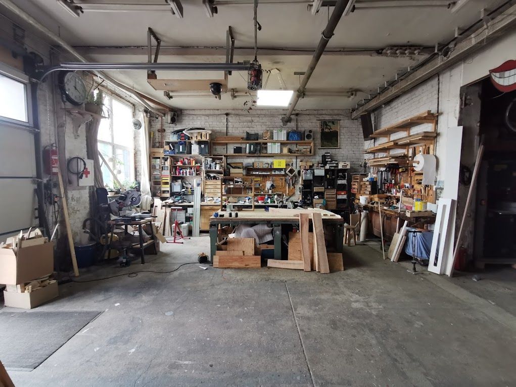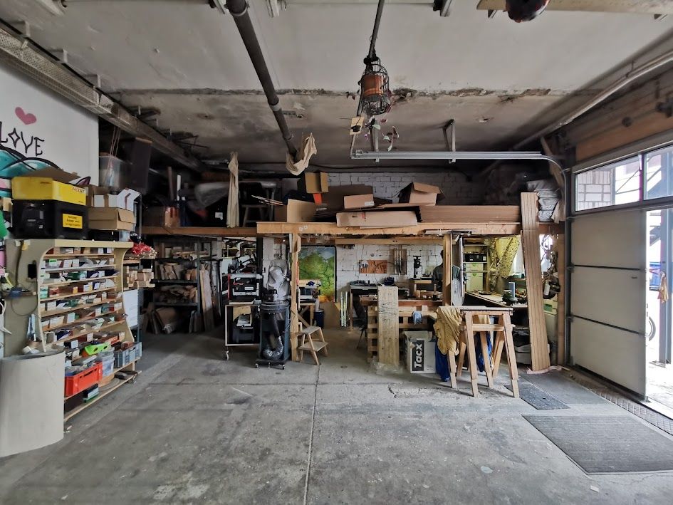 70qm Holzwerkstatt und 45qm Metallwerkstatt.