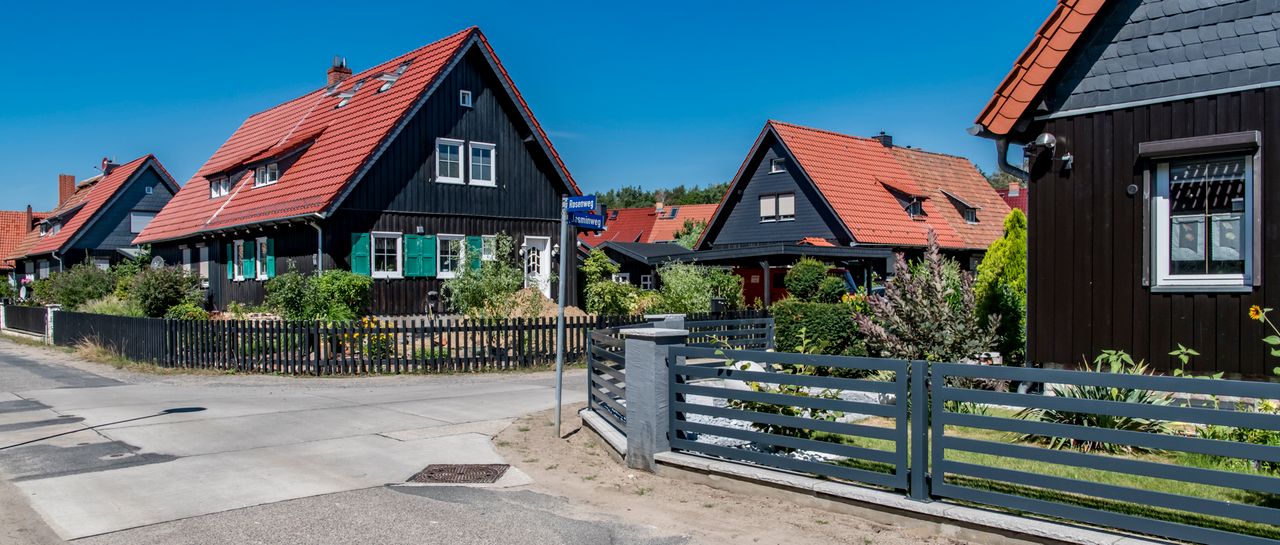 Denkmalgeschützte Wohngegend in Ludwigsfelde bestehend 75 1944 errichteten Holzhäusern.
